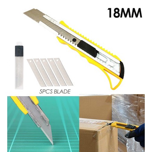 18mm Cutter Blade Pisau Pemotong Mata Pisau Cardboard Tape Plastic Cutter Knife With For Art Craft Stationery