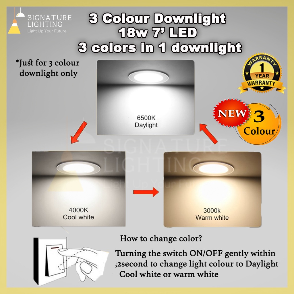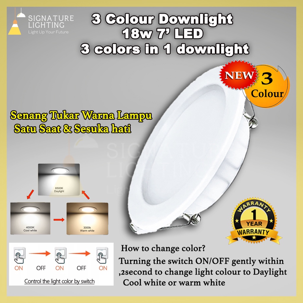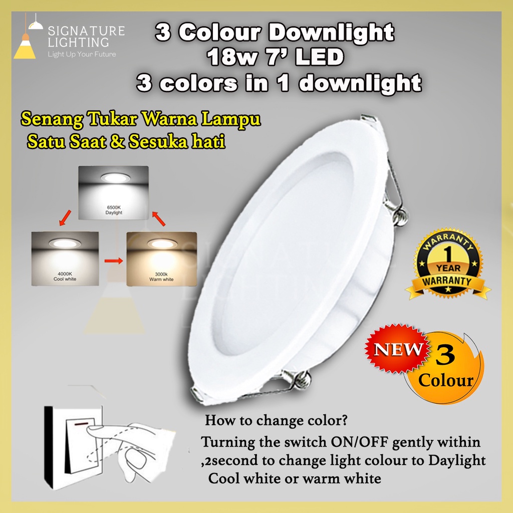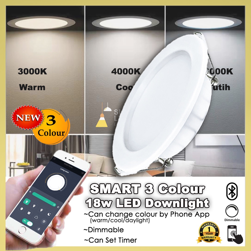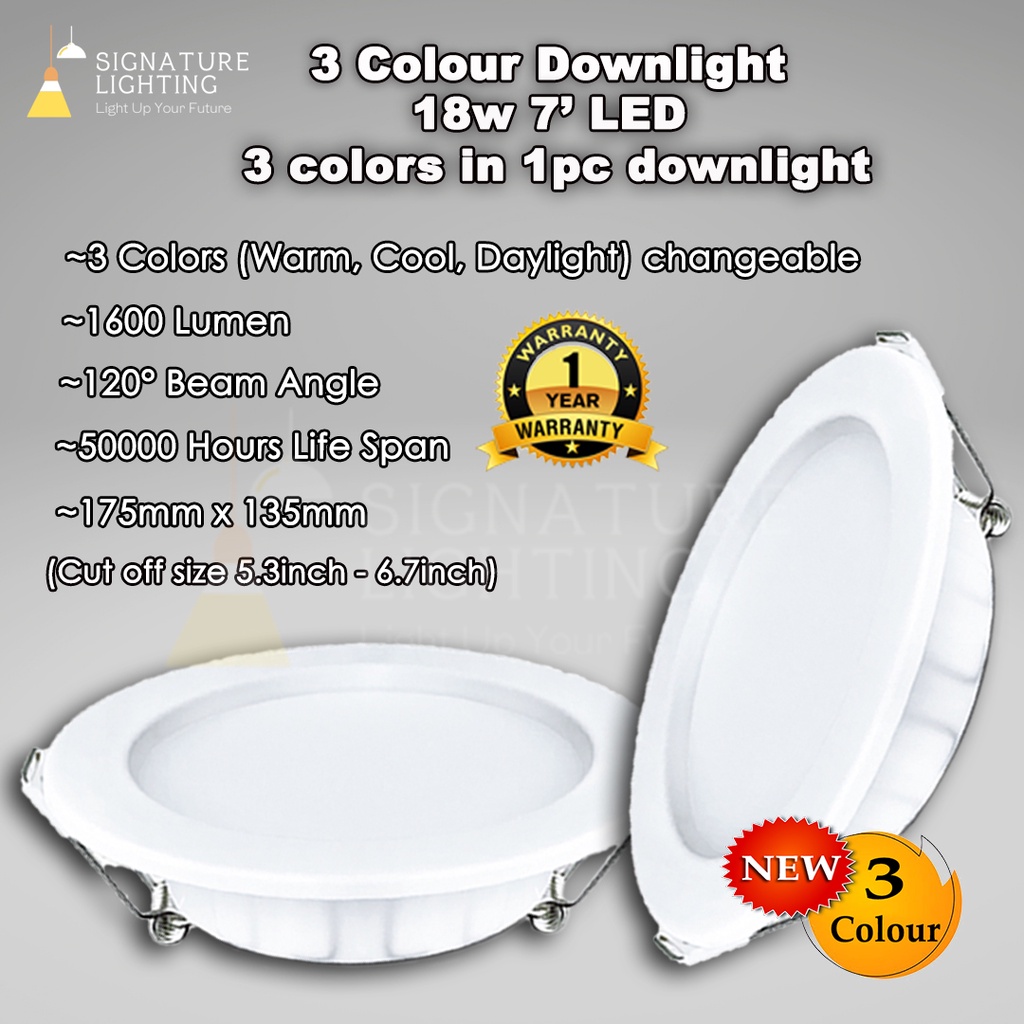 18w Led Downlight boleh tukar 3 warna cahaya lampu bulat siling Lampu Downlight 6 inci downlight led ceiling light