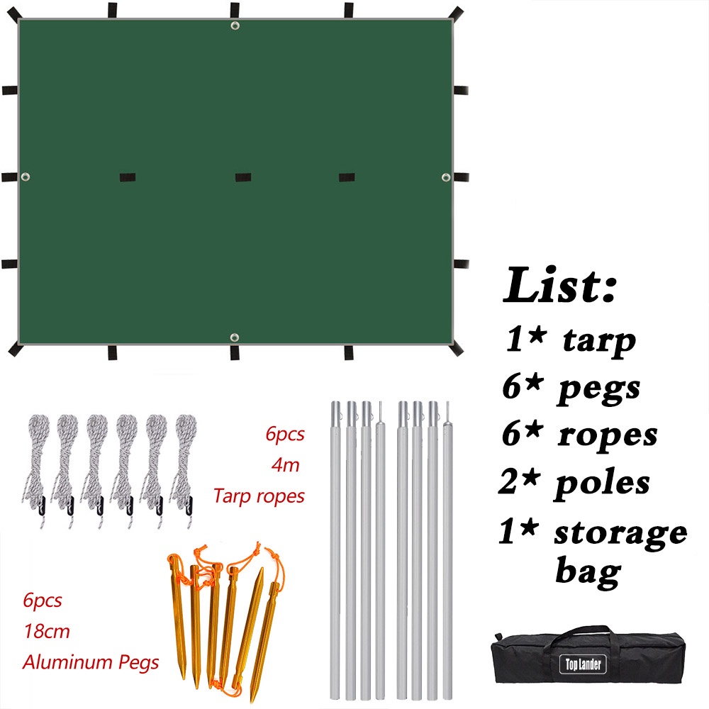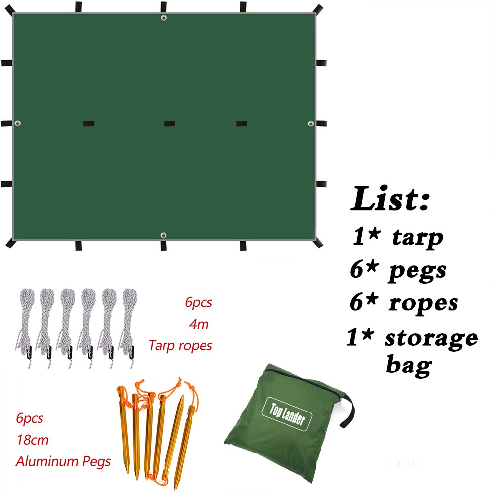 19 Hanging Points Camping Flysheet 210T Polyester Waterproof 3x4m Tent Tarp Screen Survival Sun Shelter Outdoor Backpacking 4x4 Ground Sheet 3x4 Fly Sheet 3x3 Tent Fly