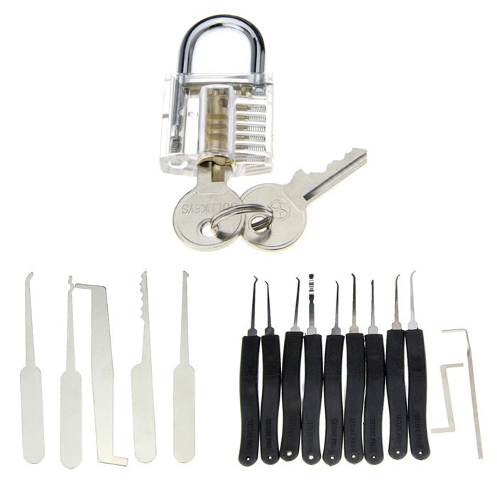 19 In 1 Practice Padlock Set - Lock + Lockpick Combination Tool