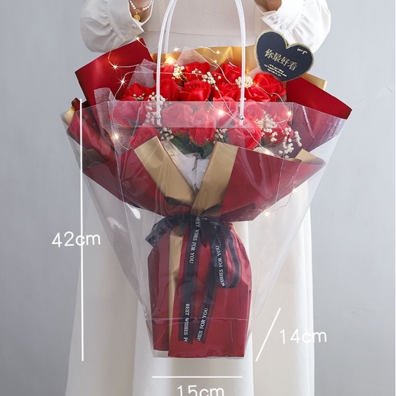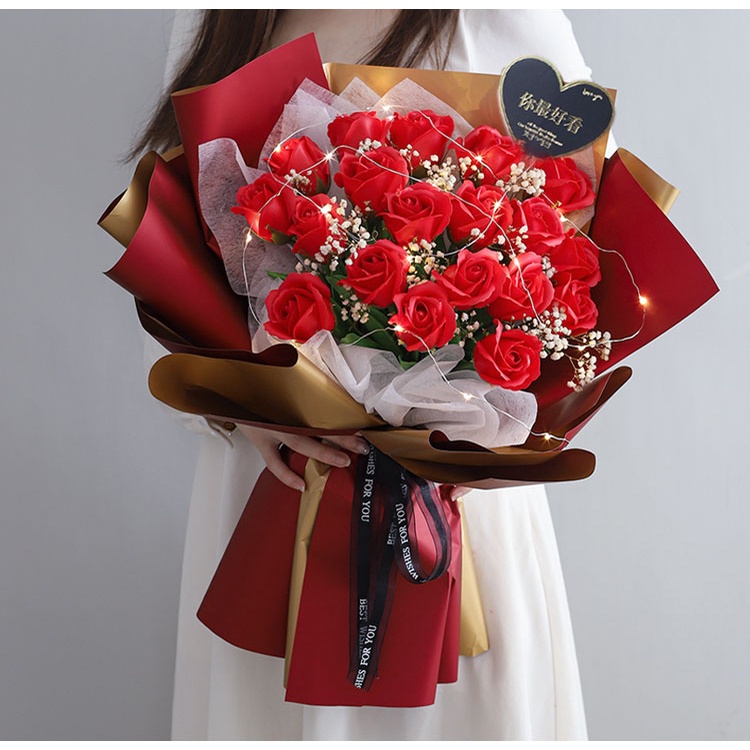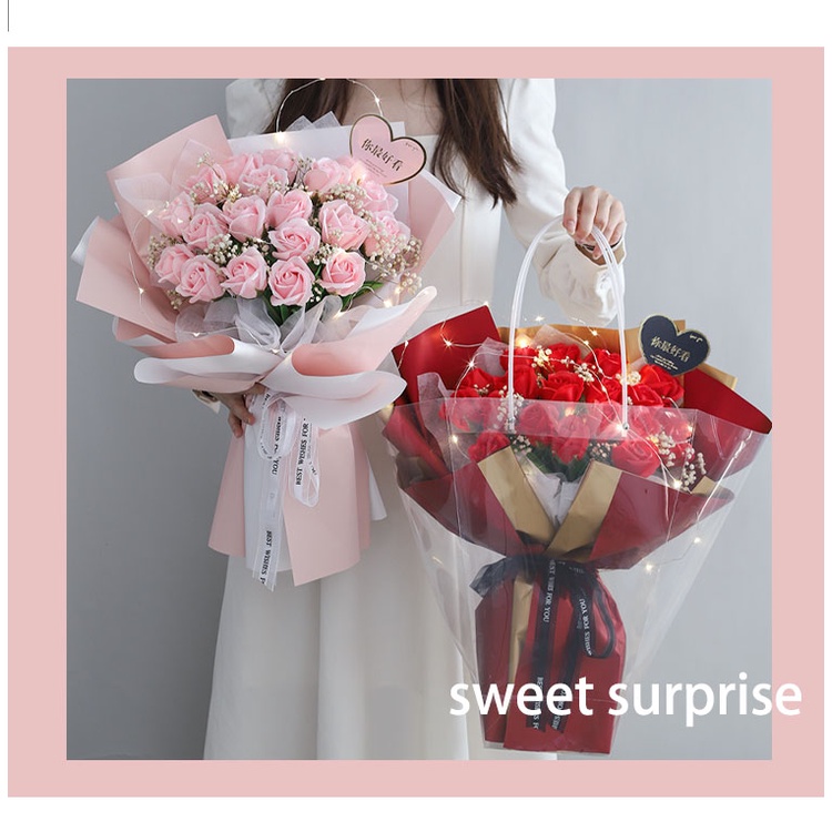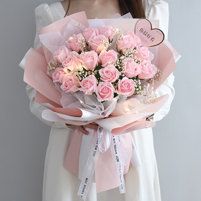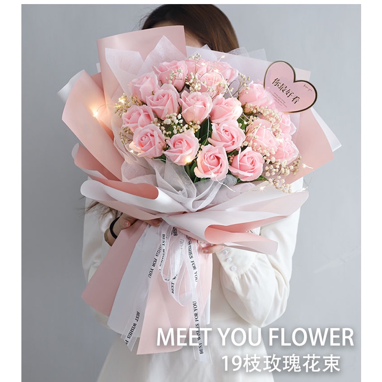 19 Stalks Soap Rose Carnation Large Flower Baby Breath Bouquet Birthday Graduation Valentine Mother's Day
