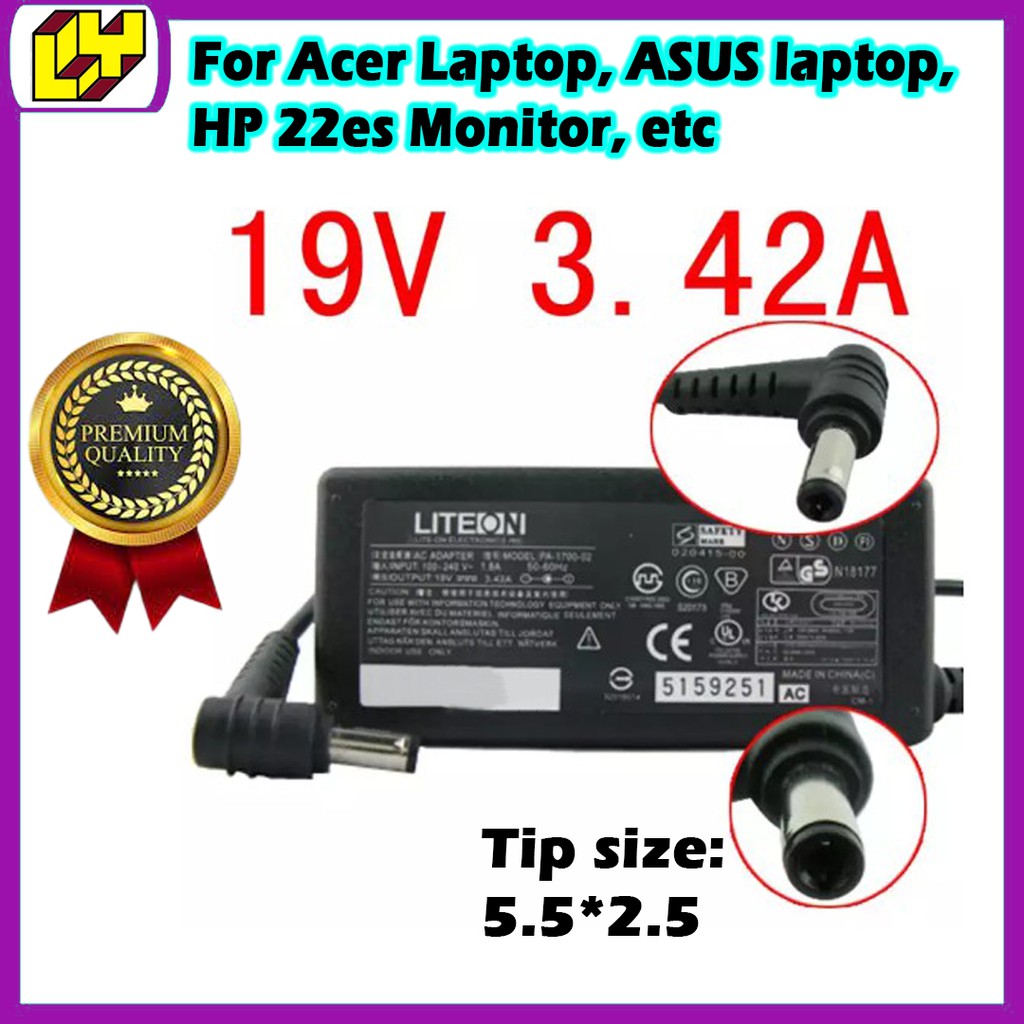 19V 3.42A 5.5*2.5 Charger Adapter for Acer Laptop, ASUS Laptop, HP 22es Monitor with Power Cord