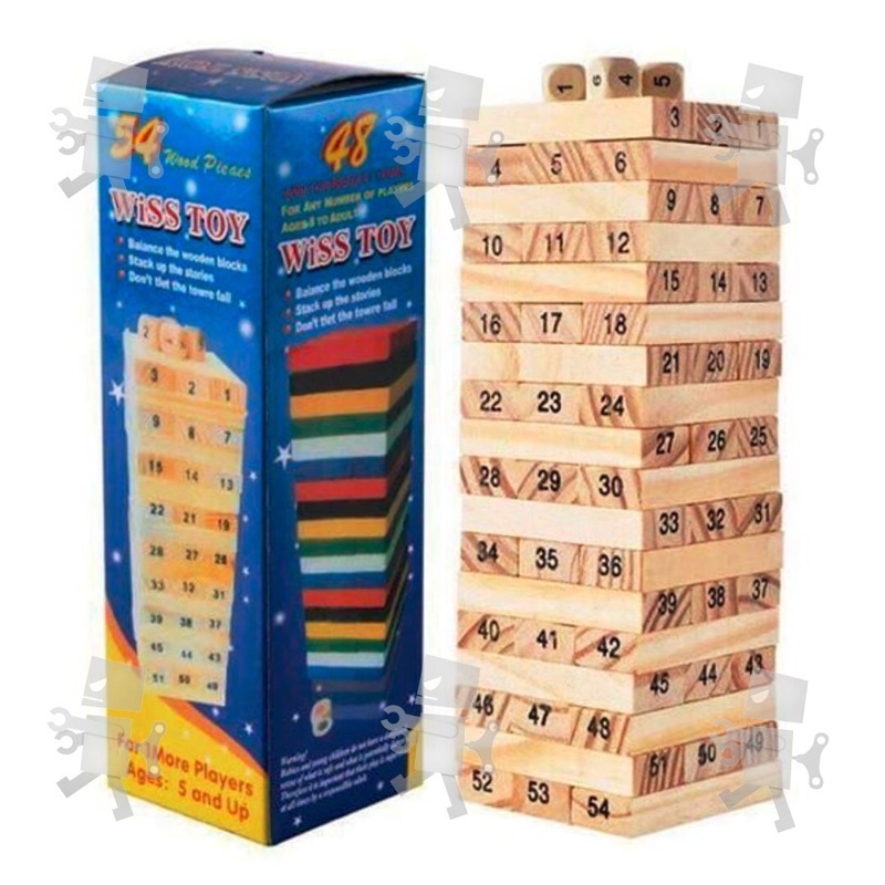 19cm 54pcs Wiss Wooden Toy Stacking Blocks / Jenga Tower Stacker Game (Small Set)