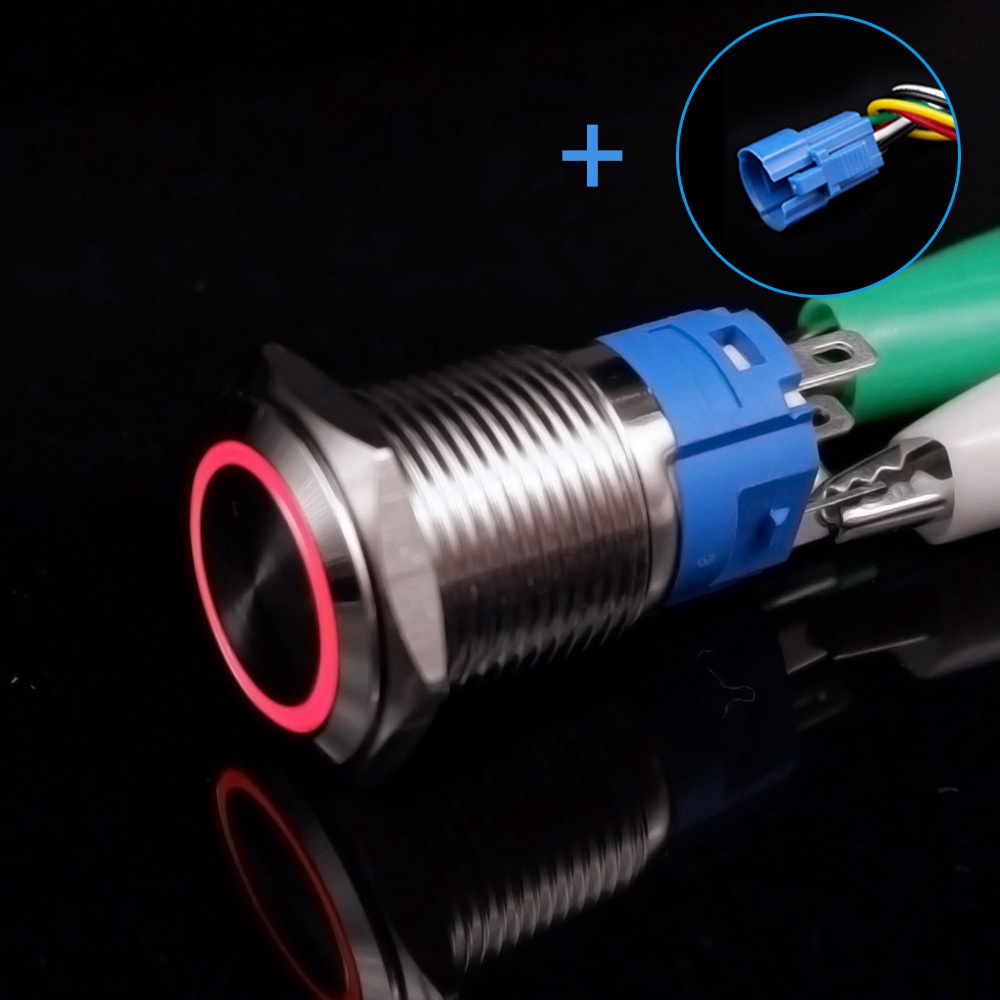 19mm Push Button Switch Led Ring Momentary 19mm Waterproof Metal Push Button Switch LED Light Momentary Latching Flat circular Car Engine Power Switch 5V 6V 12V 24V 220V