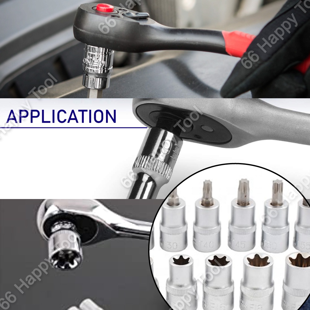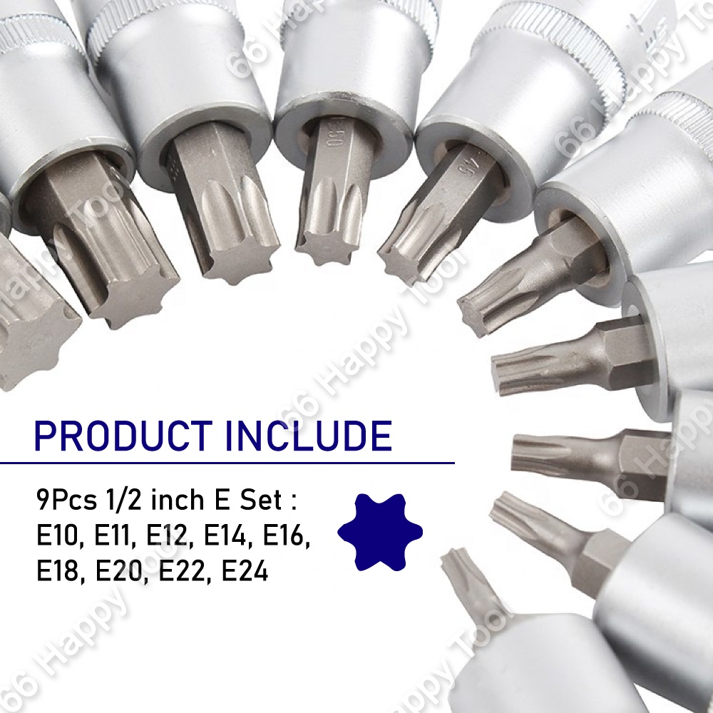 19pcs Torx Star Bit & E-Torx Socket Set 1/2" Inch Drive Wrench Hexagonal Plum Sleeve Hand Tool Kit T & E Type CR-V Tools