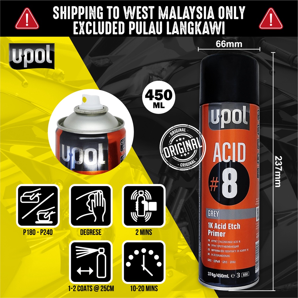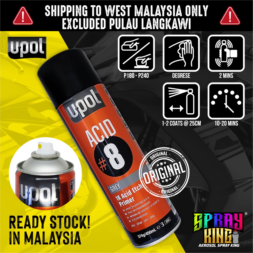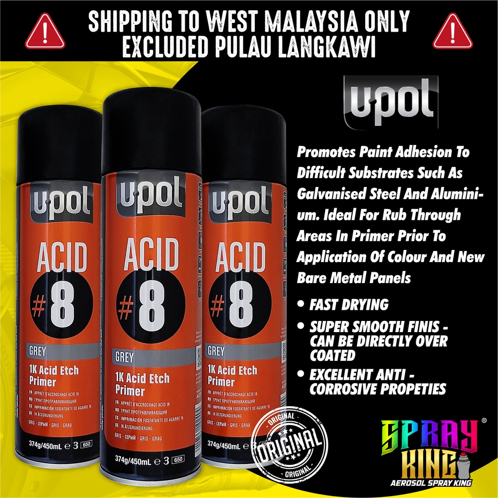 1K ACID ETCH PRIMER [ UPOL ACID 8 ] Promotes Paint Adhesion Prevent Rusting New Coating Aerosol Can Priming Surface
