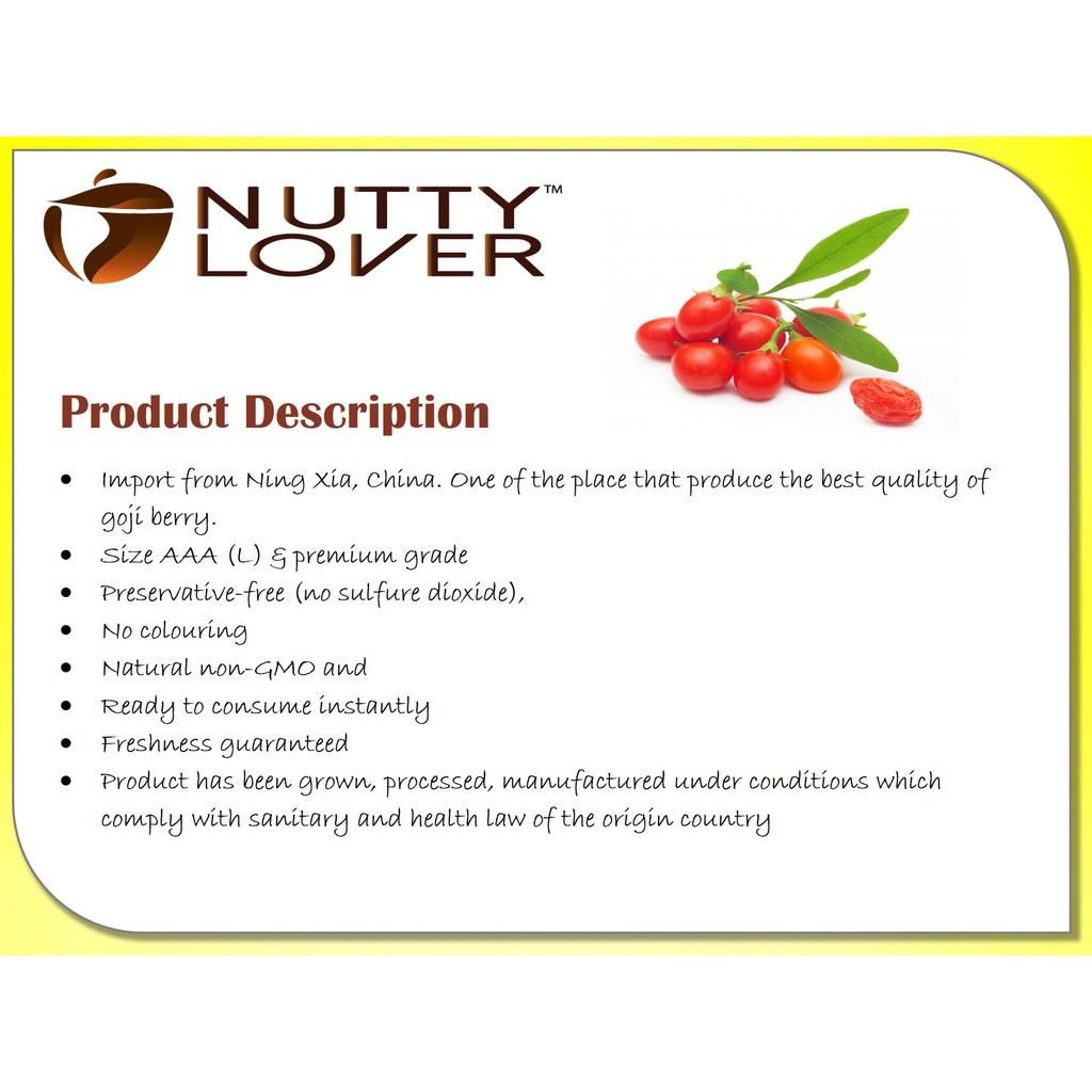 1KG Nutty Lover Premium Natural Dried Goji Berry China NingXia ( 2 x 500gram)