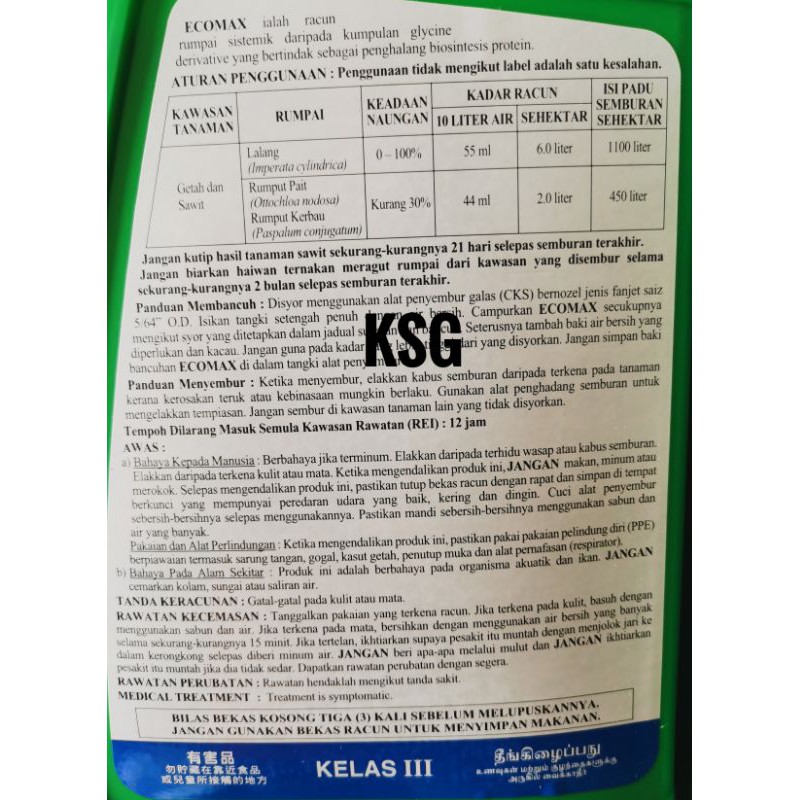 1L Ecomax Glyphosate 41% Herbicide Racun Rumput