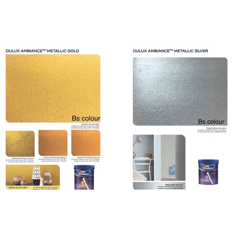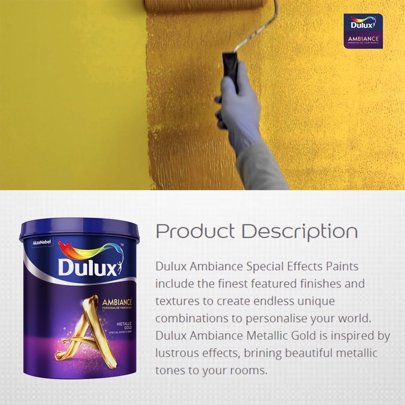 1L ICI DULUX Gold Paint Ambiance Metallic Metalic Gold Silver Bronze Copper Interior Cat Rumah Dalam Wall Paper Paint