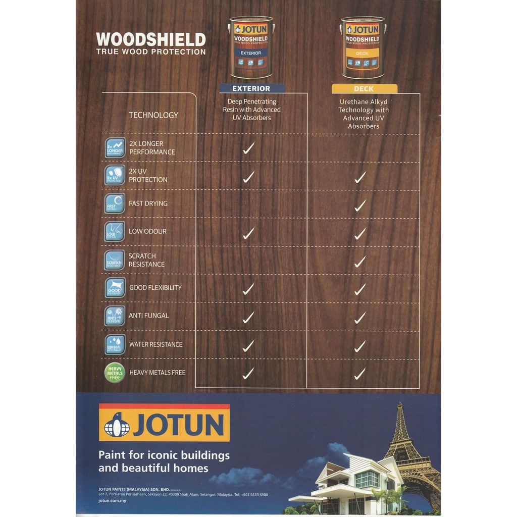 1L Jotun Paint Woodshield True Wood Protection - Exterior Varnish Kilat Shellac Kayu Syelek / Interior