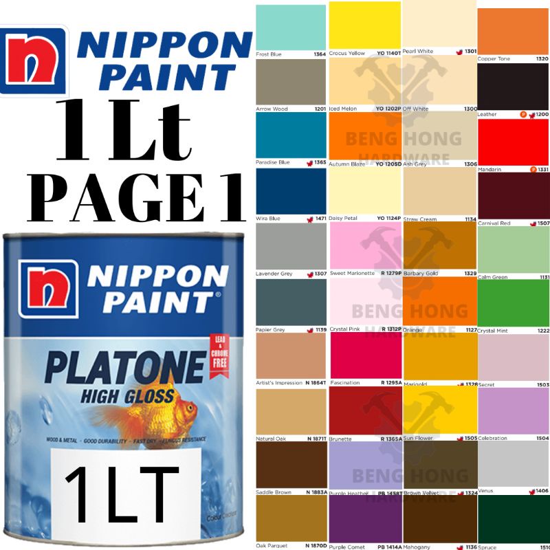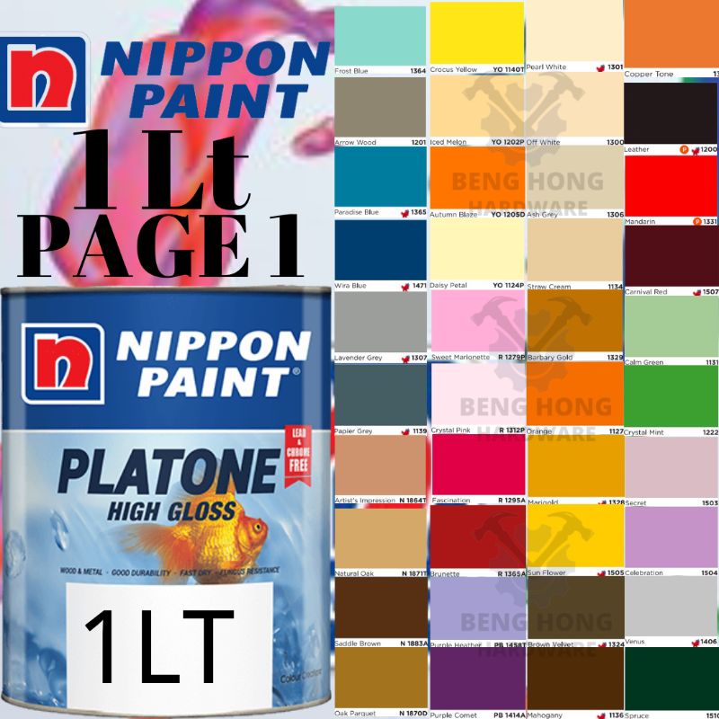 1L Nippon Paint Platone High Gloss Wood & Metal Paint Cat Kayu & Cat Besi Cat Minyak PAGE1