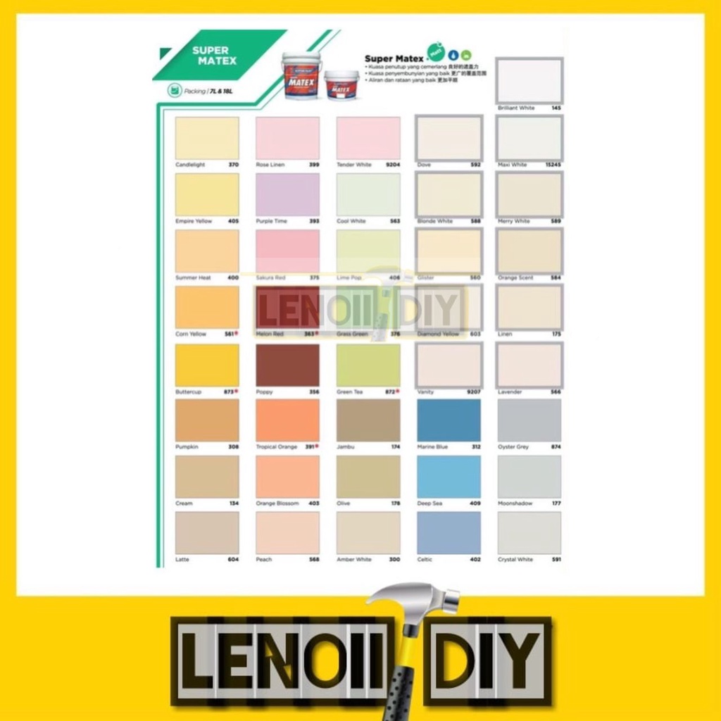 1L SUPER MATEX Interior Acrylic Emulsion Paint Wall Ceiling Cat Dinding Dalam Nippon Paint Jotun Jotaplast