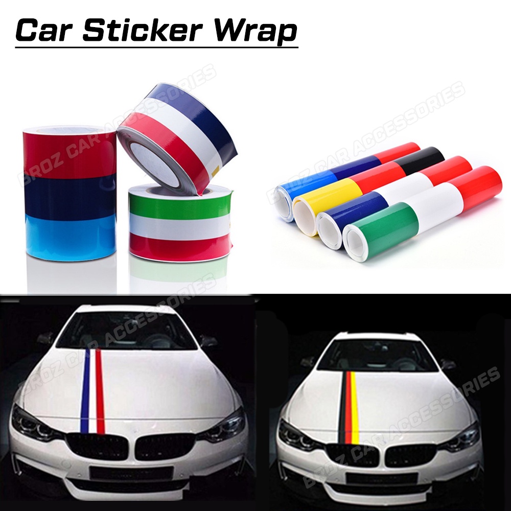 1M/5M Flag Stripe Car Kereta Hood Vinyl Sticker Decal Stripe Vinyl Car Sticker France/Italy/Germany/BMW Car Sticker Wrap