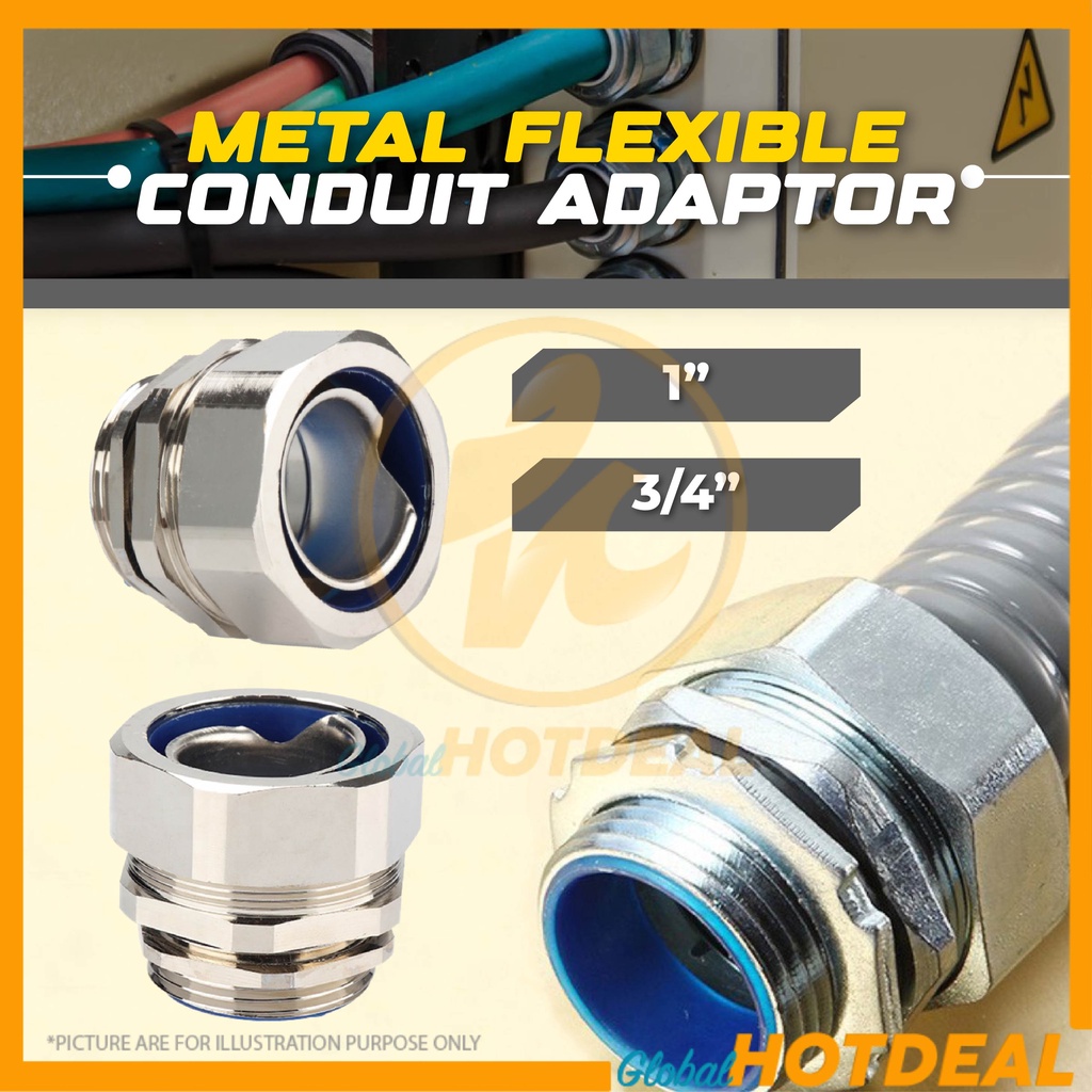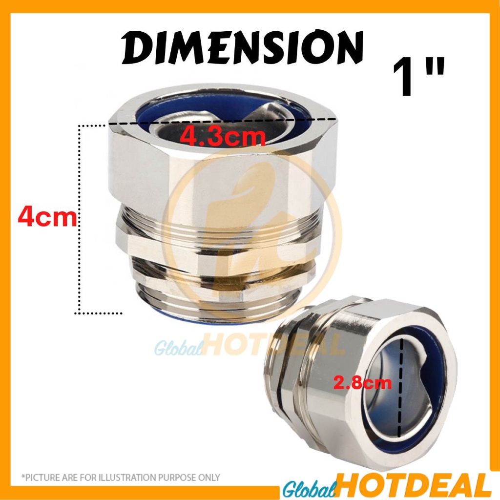 1PC 3/4"/1" Metal Hose Conduit Connector for Flexible Hose Cables Watertight Flex Penyambung Kabel Fleksibel Silver