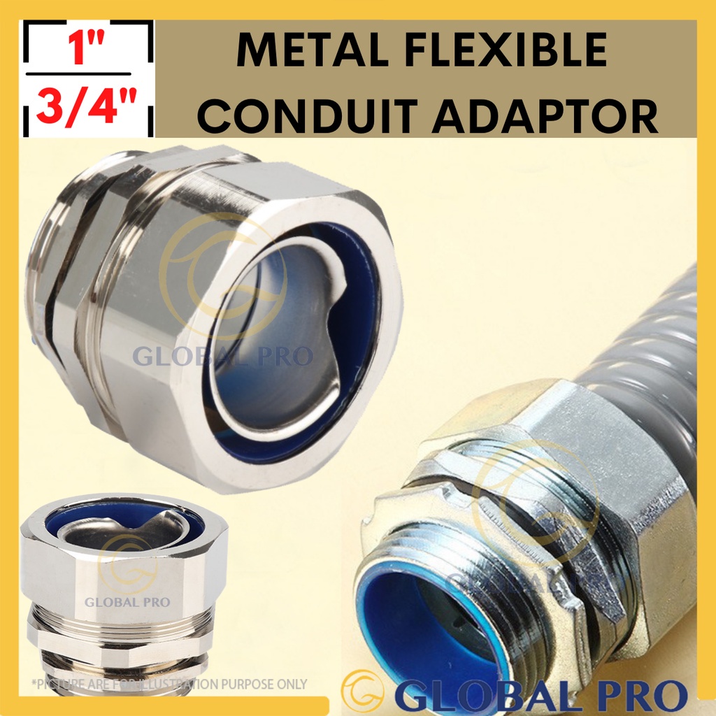 1PC 3/4"/1" Metal Hose Conduit Connector for Flexible Hose Cables Watertight Flex Silver Penyambung Kabel Fleksibel