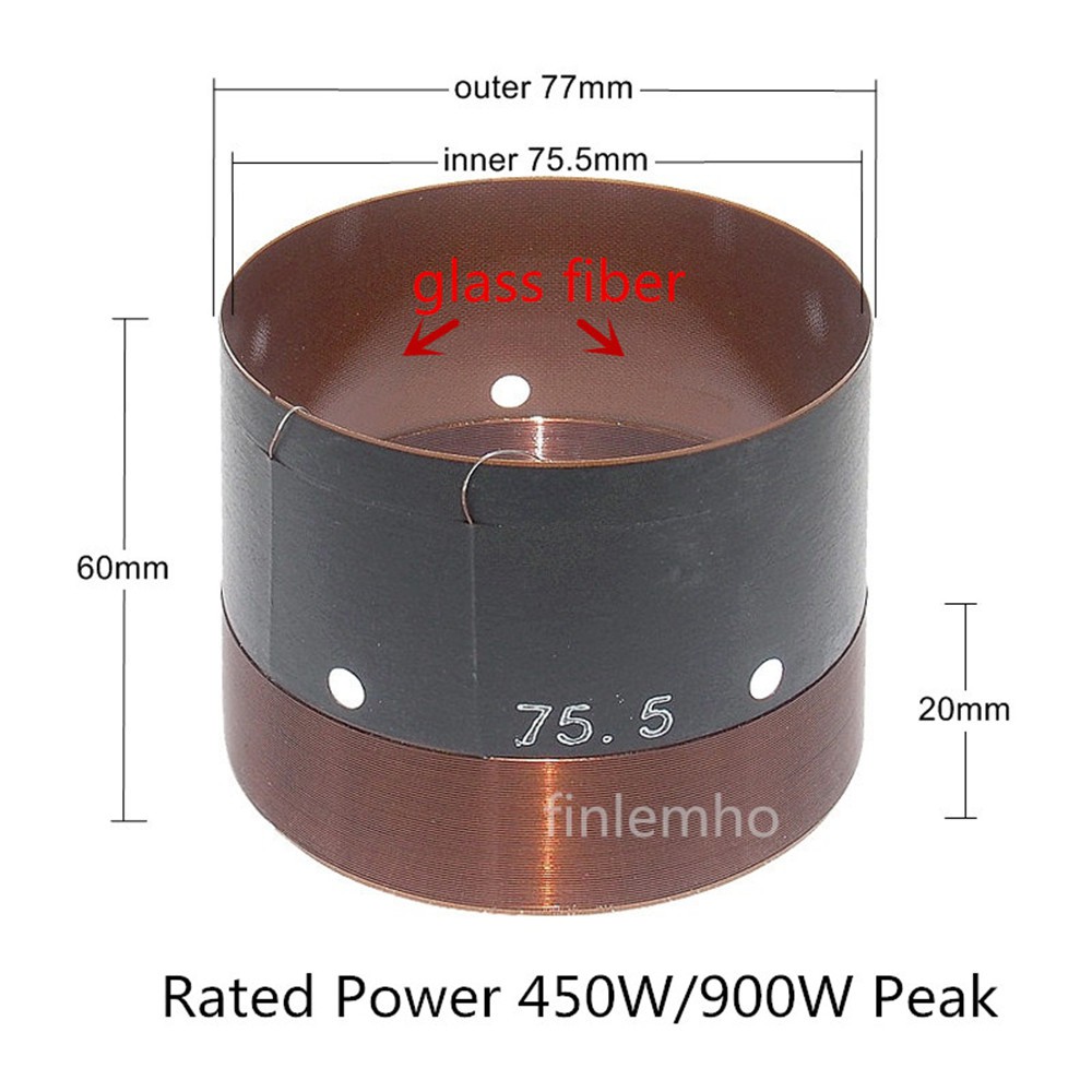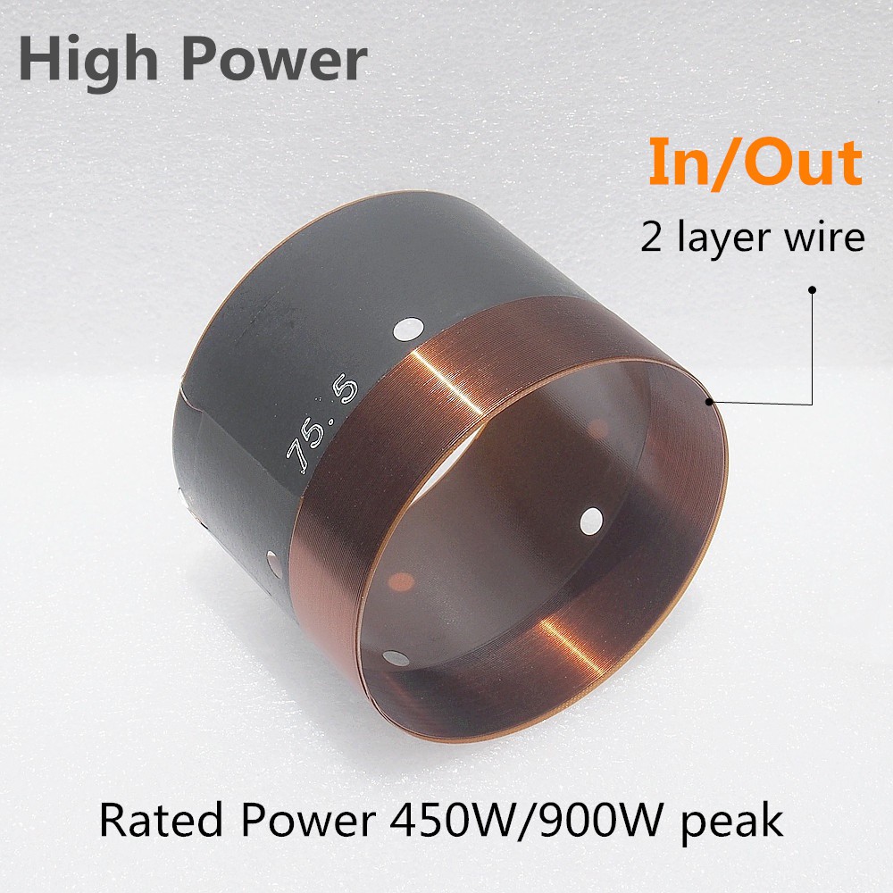 1PC 75.5mm Speaker Voice Coil 900W Max Bass Speaker Repair Parts With In Out 2 Layers Copper Wire Glass Fiber Former High Power