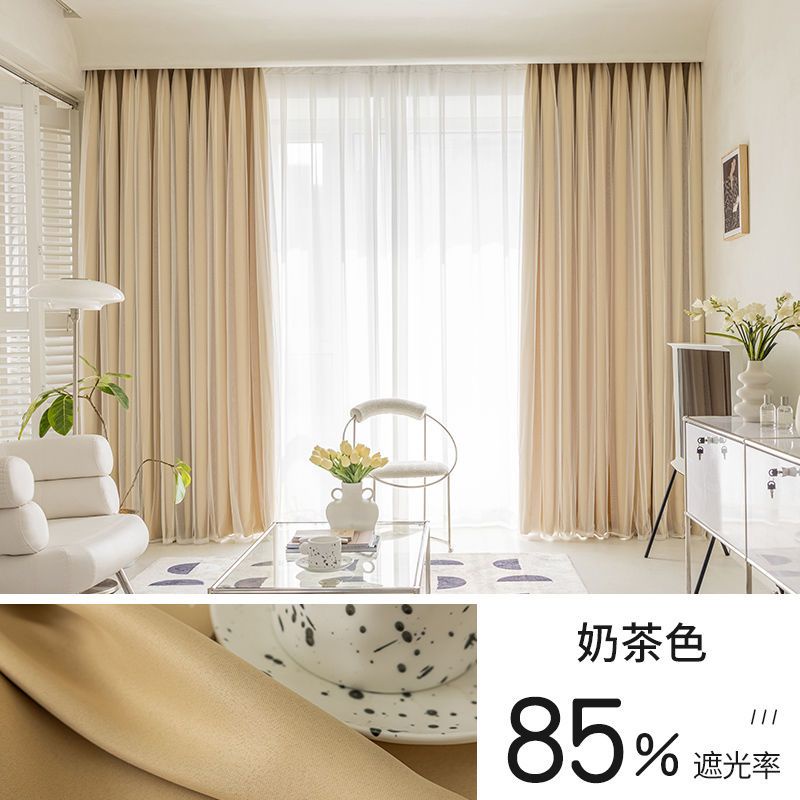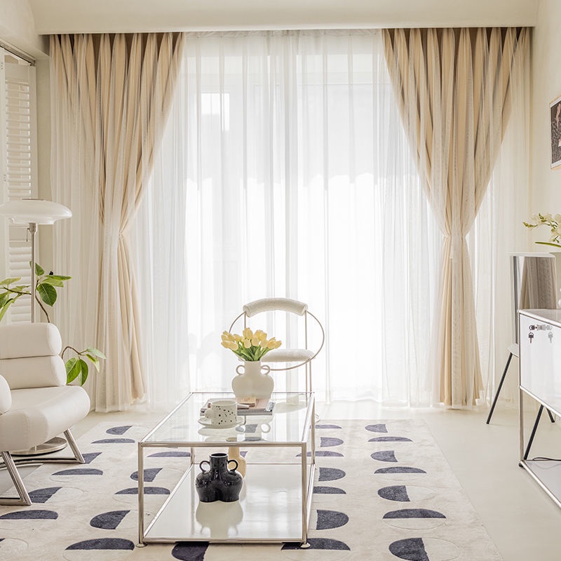 1PC Grommet 4 Color Double Layer Blackout Curtain For Living Room Colth and Sheer Tulle Langsir for Bedroom Window Drape