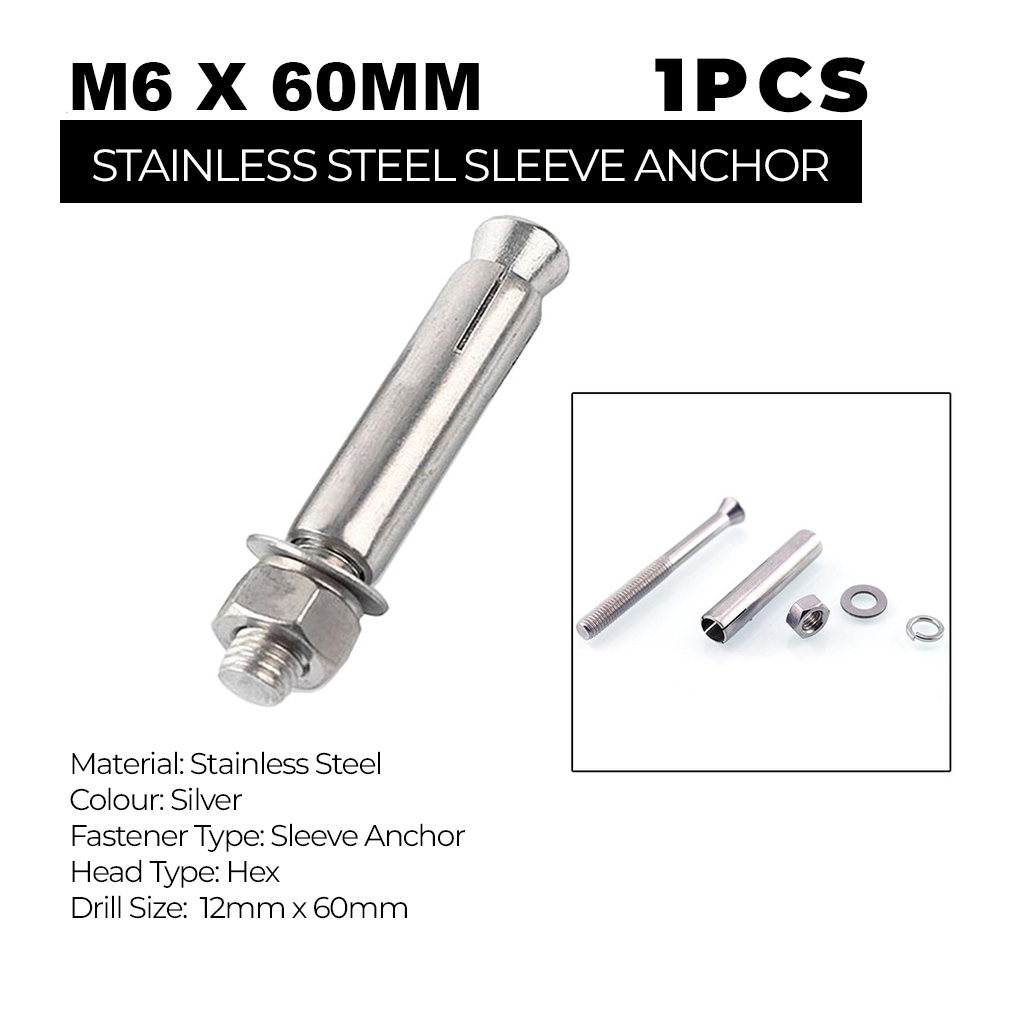 1PC M8x60mm Sleeve Anchor Wall Plug Besi Skru Dinding Simen Hexagon Screw Wall Plug Iron Plug Expansion Bolt Besi