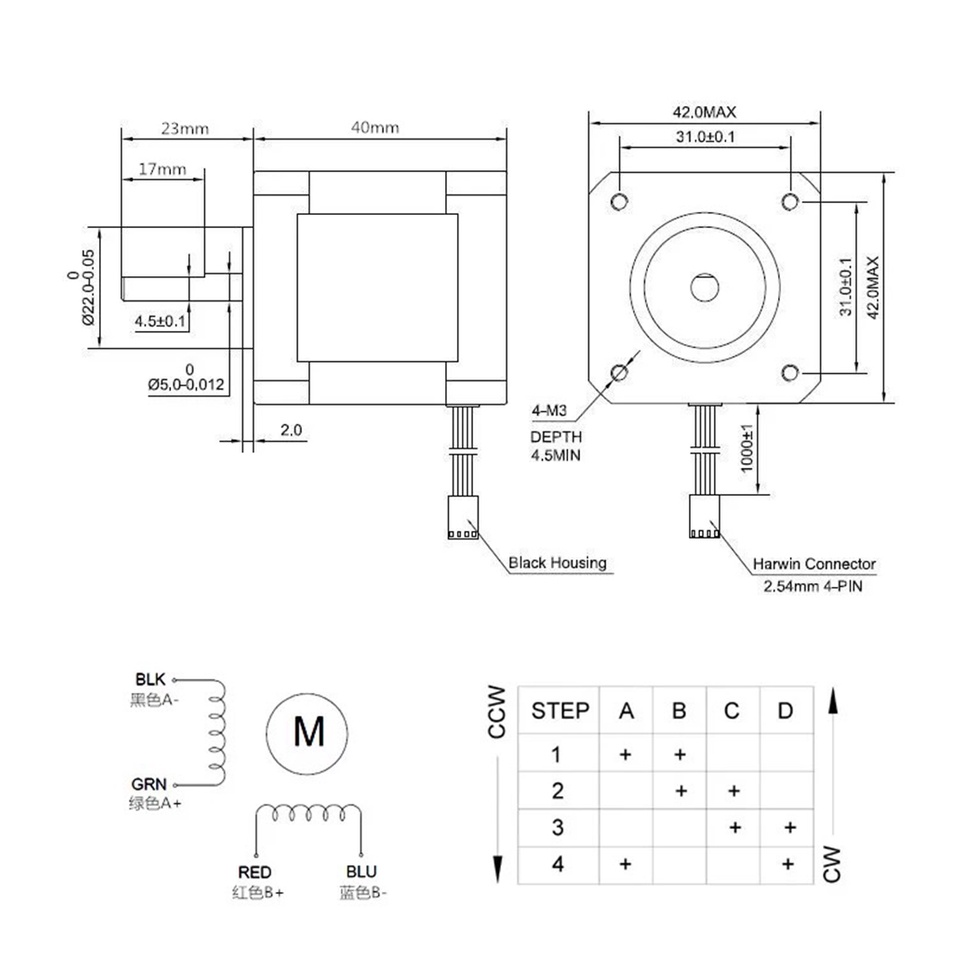1PC Nema 17 Stepper Motor 42 Motor Nema17 Stepping Motor 40mm 42BYGH 1.68A(17HS4401S) Step Motor 4-lead for CNC 3D Printer