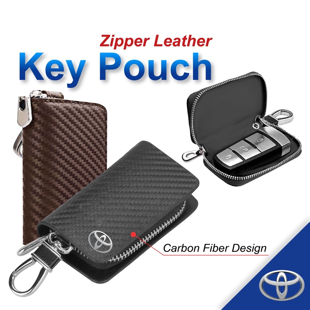 1PC Toyota Logo Car Zipper Key Pouch Leather Case Smart Remote Vios Yaris Altis Camry Hillux Alphard