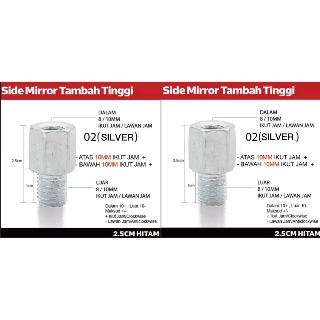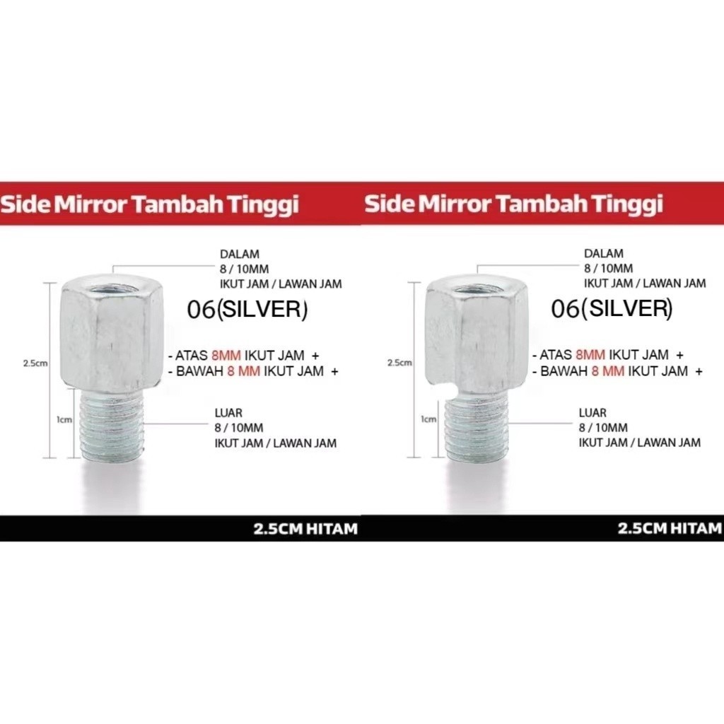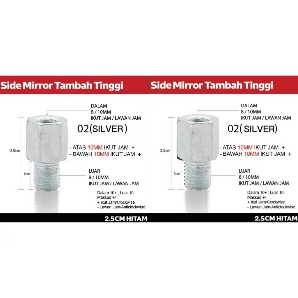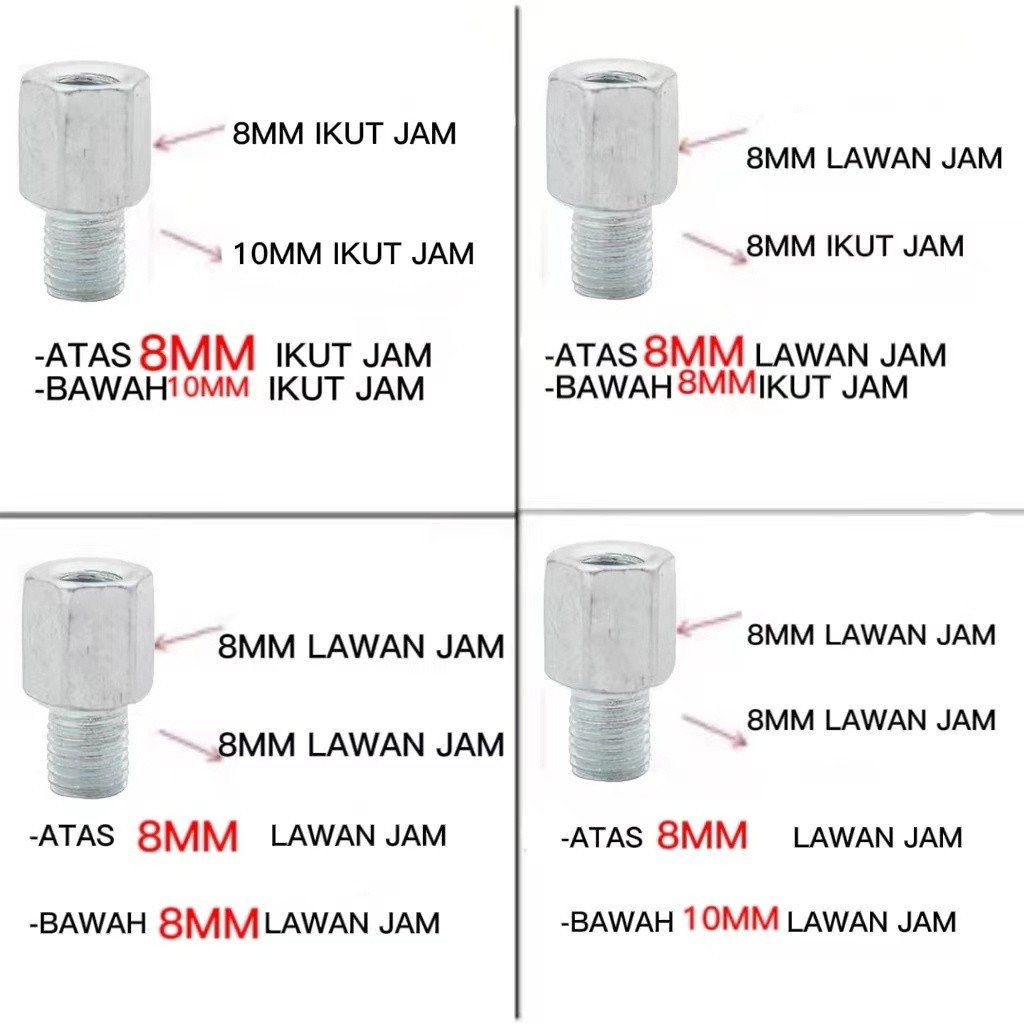 1PCS Motorcycle Side Mirror Adapter Bolts Screw Nut 8mm 10mm YAMAHA HONDA Skru Tambah Tinggi Cermin SIDE MIRROR ADAPTER