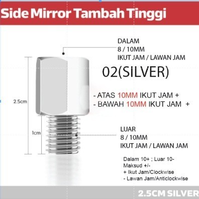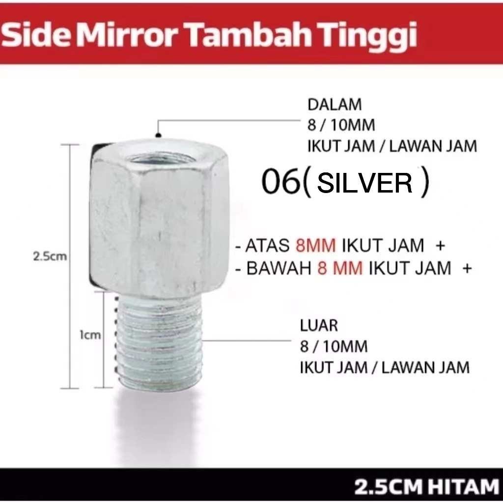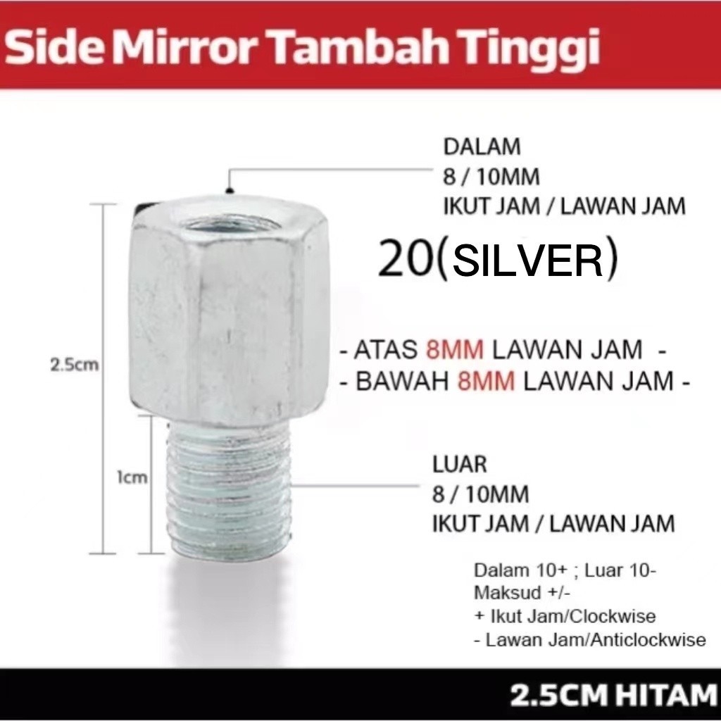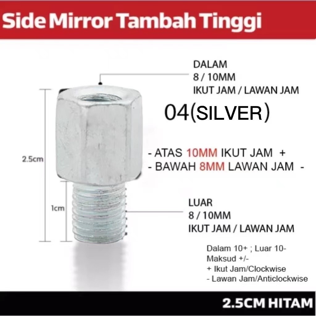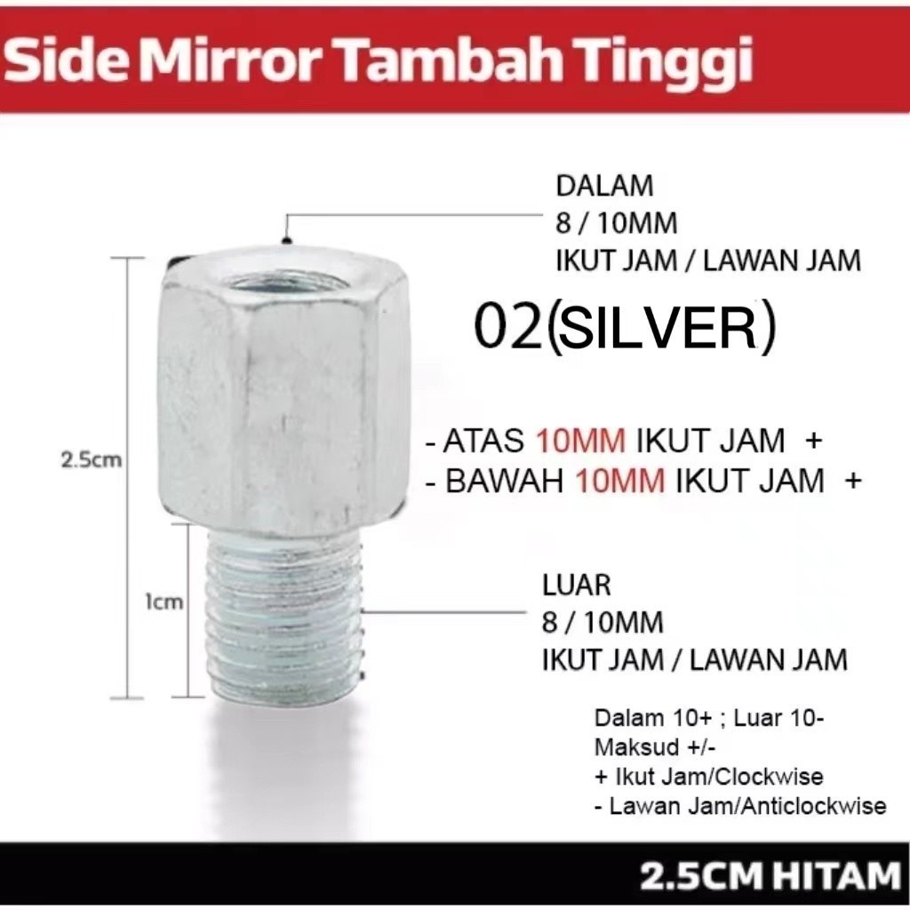 1PCS Motorcycle Side Mirror Adapter Bolts Screw Nut 8mm 10mm YAMAHA HONDA Skru Tambah Tinggi Cermin SIDE MIRROR ADAPTER