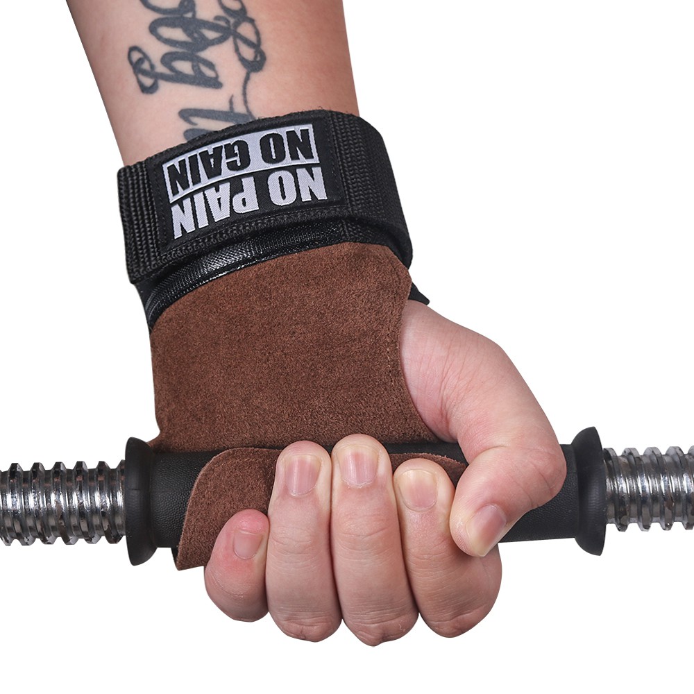1Pair Cowhide Gym Gloves WeightLifting Deadlift Exercise Sports Fquipment Hand Palm Protection Thickness Yellow SS 60 .