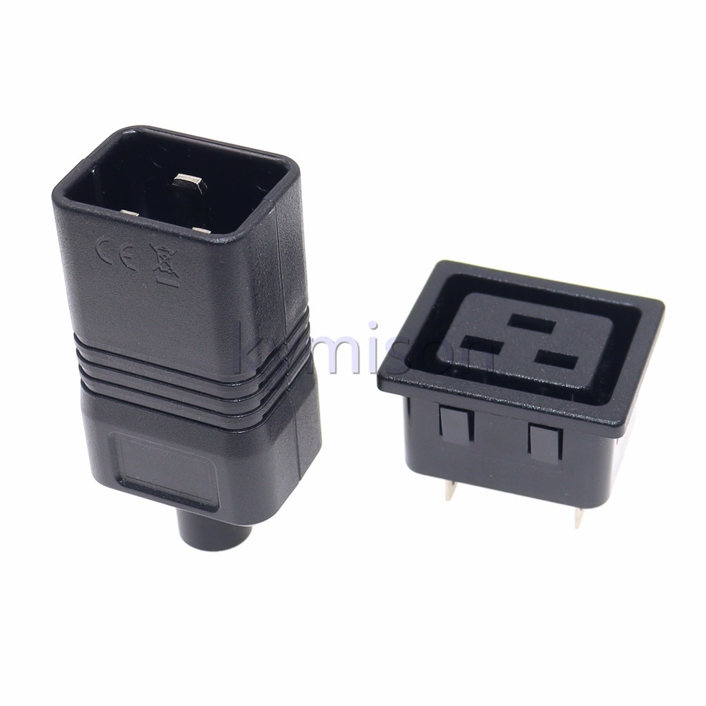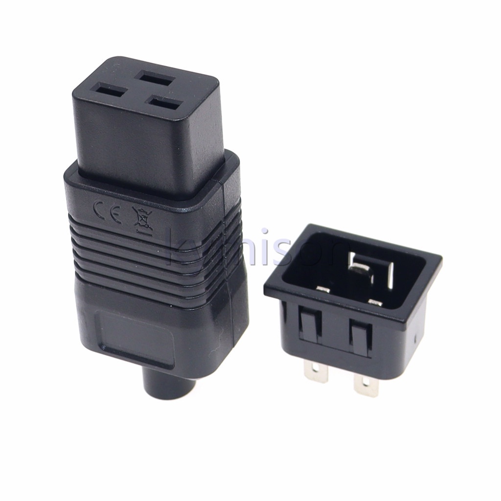 1Pair PDU/UPS Socket Standard IEC320 C19 C20 Female Male Plug Adapter AC Electrical Power Cable Cord Connector Removable 16A