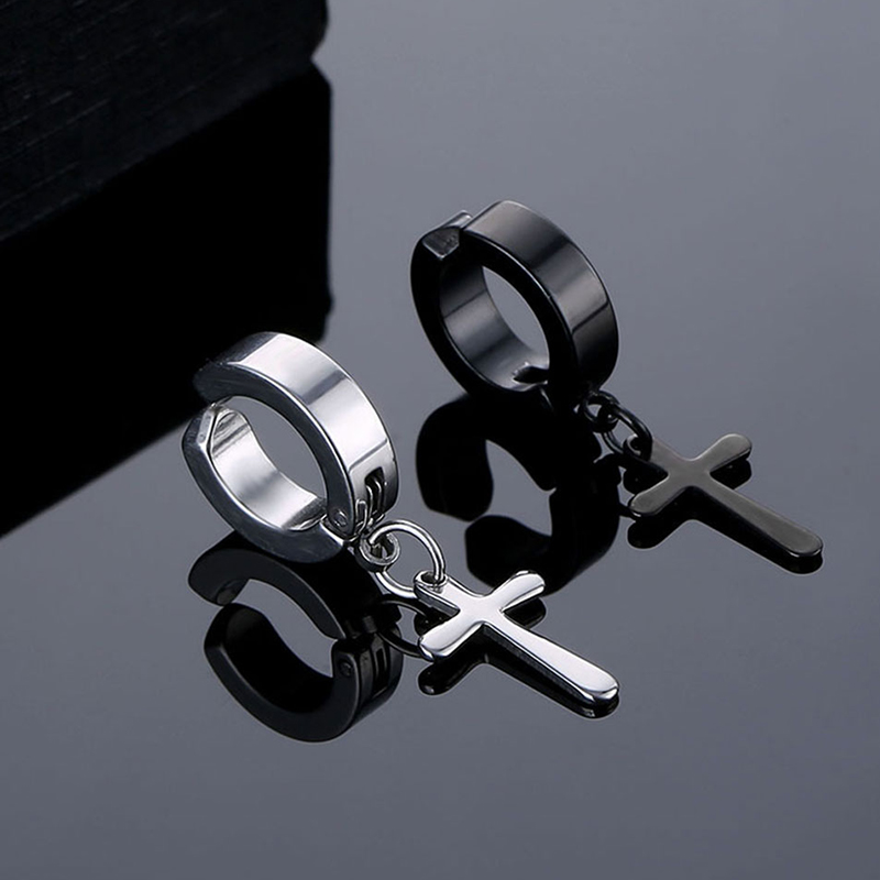 1Pairs Cz Magnetic Stud Earrings For Men Stainless Steel Non-Piercing Cross Dangle Hoop Earrings Unisex Cross Clip On Earring