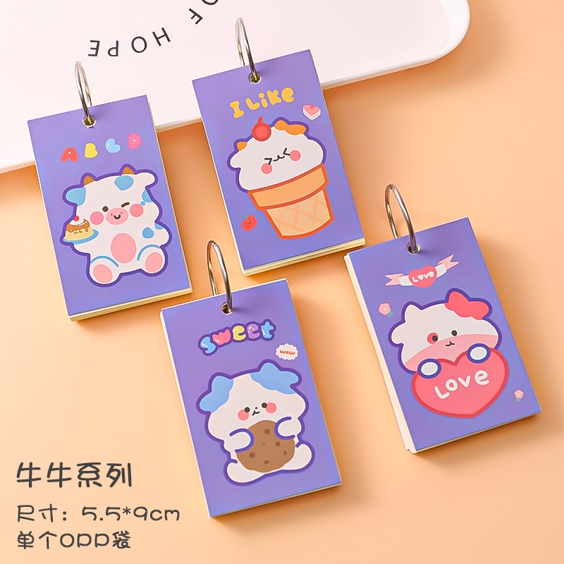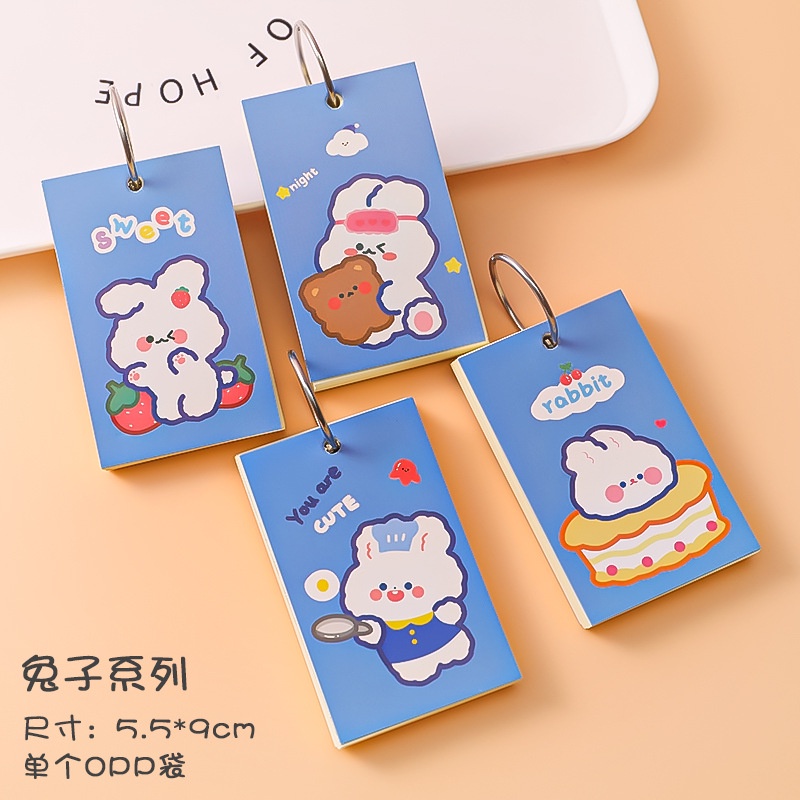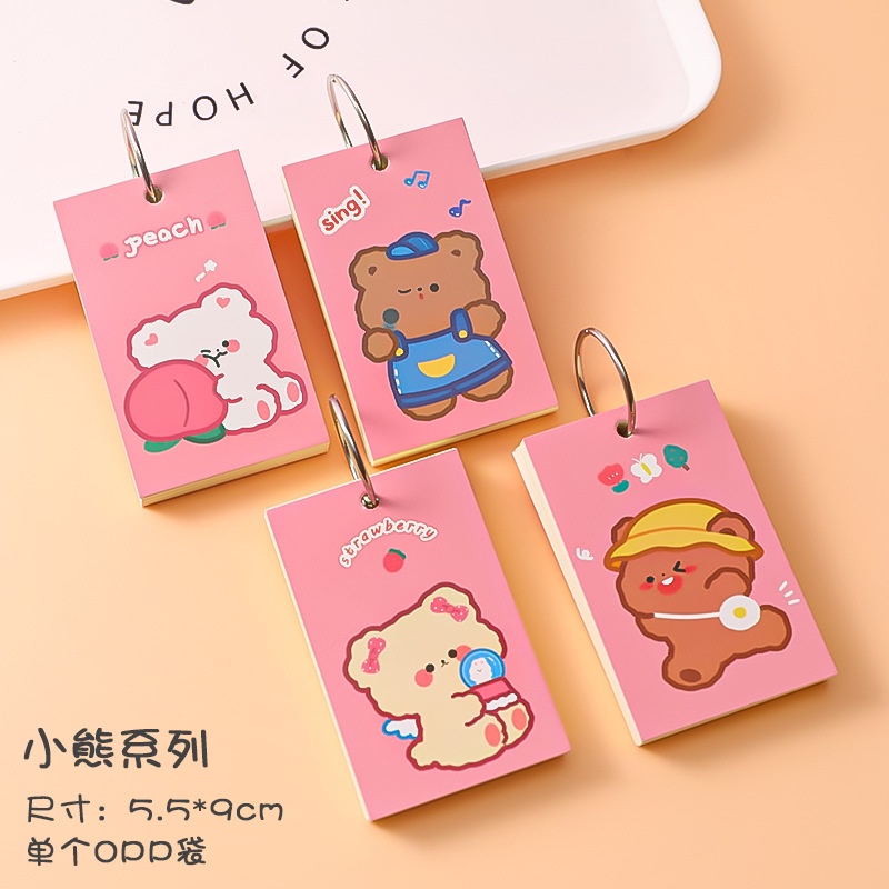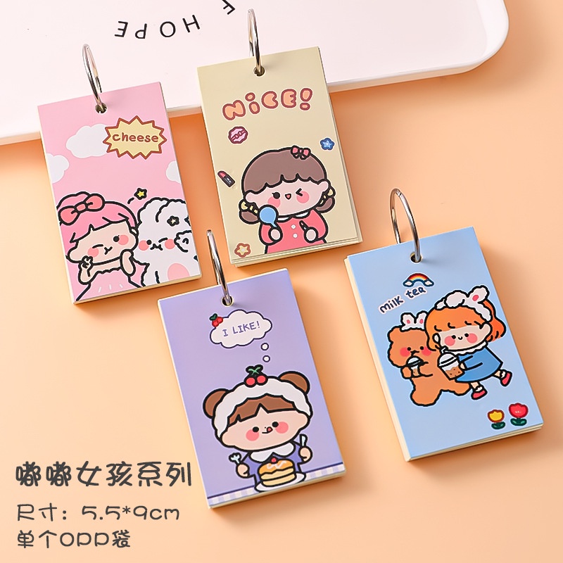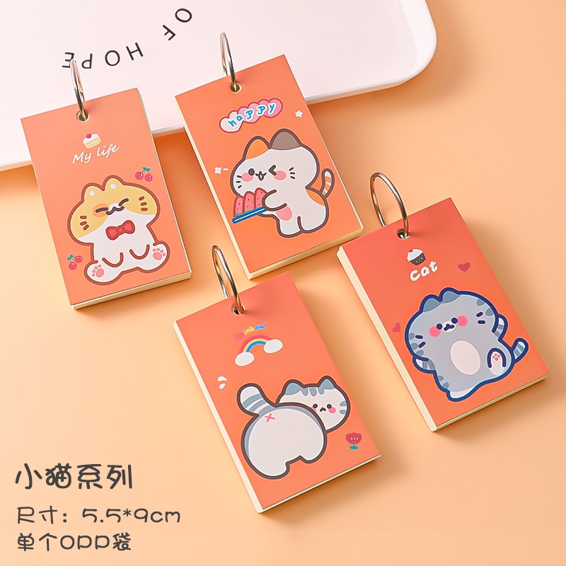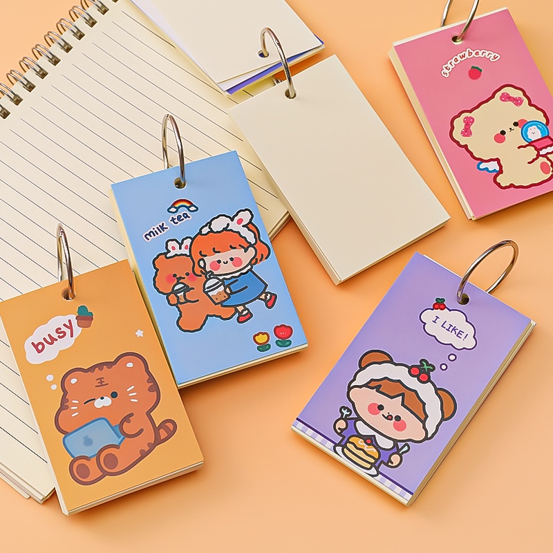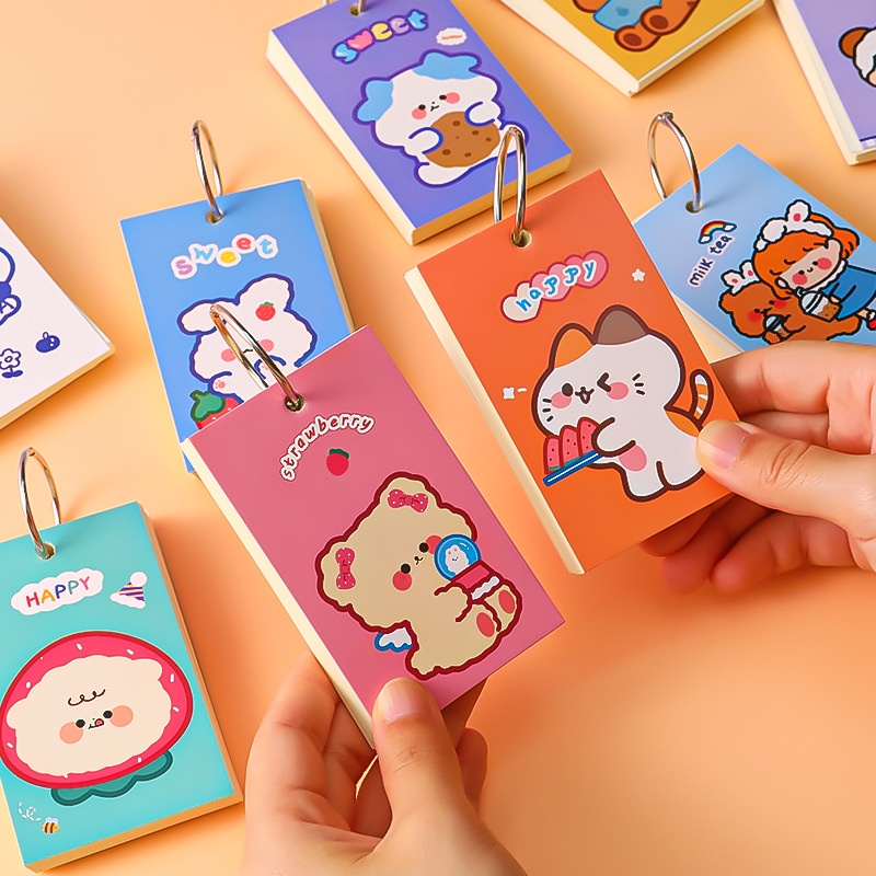 1Pc/1Book Cartoon Paper Cover Iron Ring Notepad Craft Paper Pad Plain Mini Memo Notepad Simple Mini Notebook Memory Card