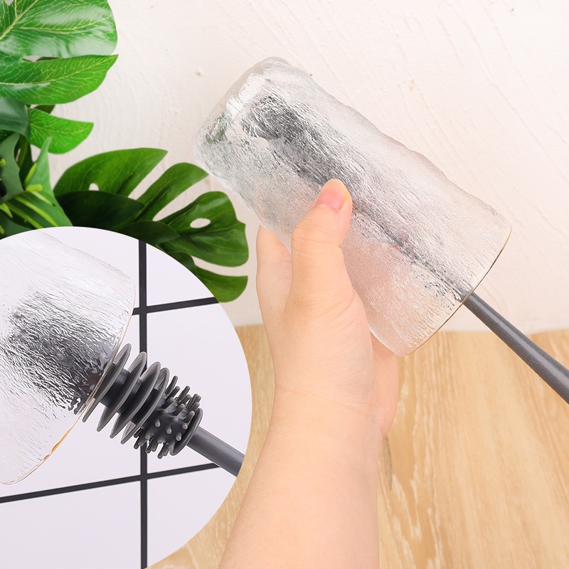 1Pc Multifunctional Soft Silicone Cup Brush Cup Scrubber Moisture-proof Long Handle Glass Cup Cleaning Brush Kitchen Cleaning Tool