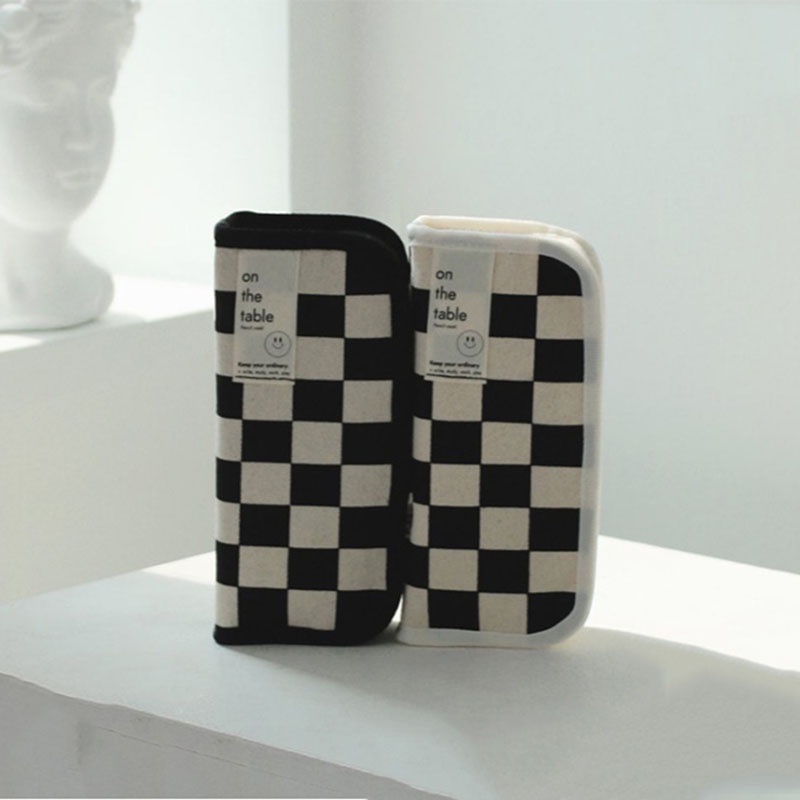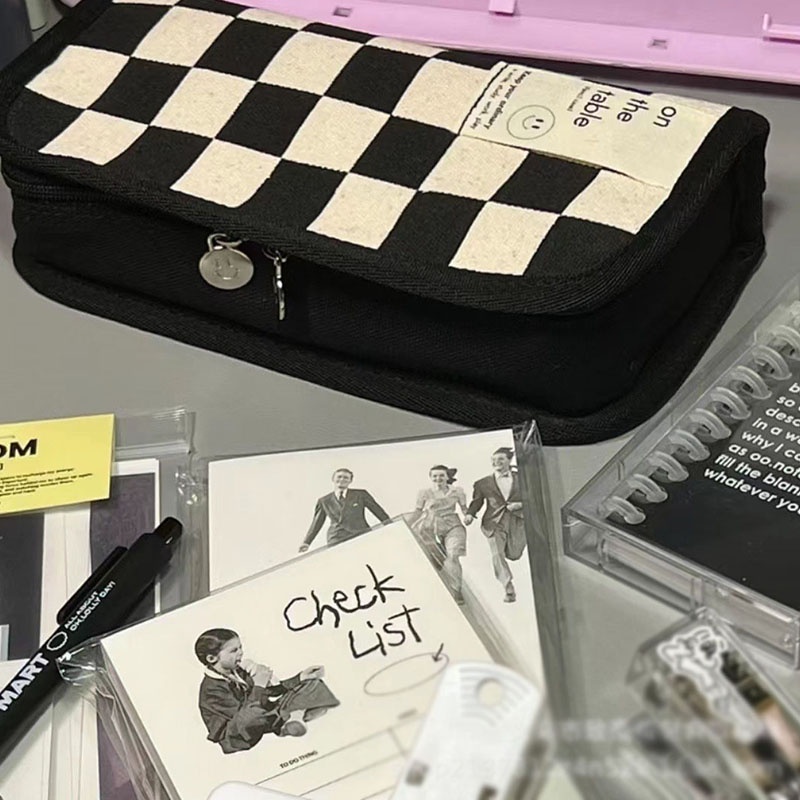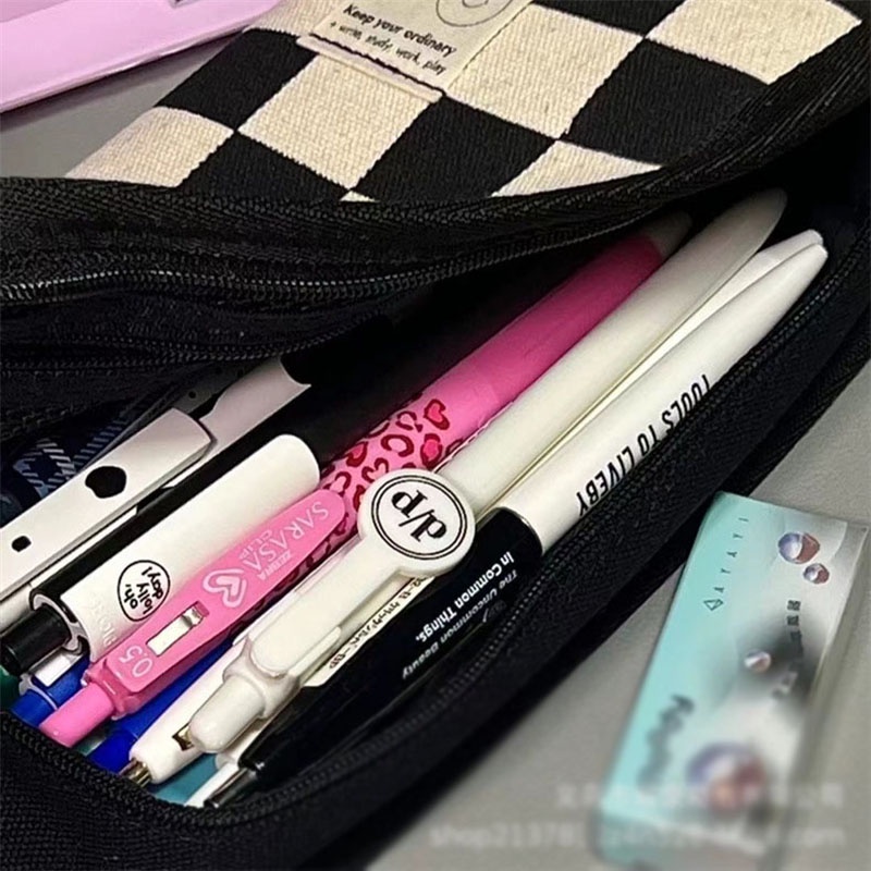 1Pc simple checkerboard pencil case, small fresh and large capacity pencil case, creative pencil case, stationery, school supplies