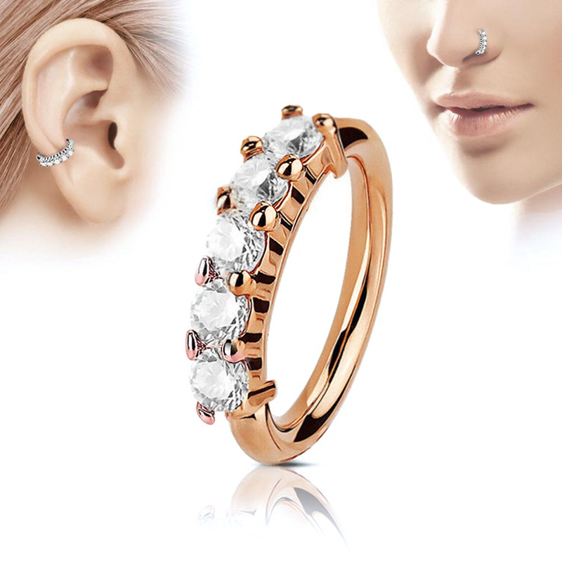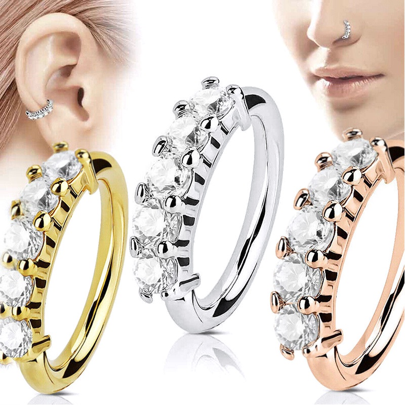 1Pcs Piercing Nose Ring Expander Seamless Segment Ear Nose Hoops Gold Color Cz Tragus Cartilage Earrings Nostril Body Jewelry