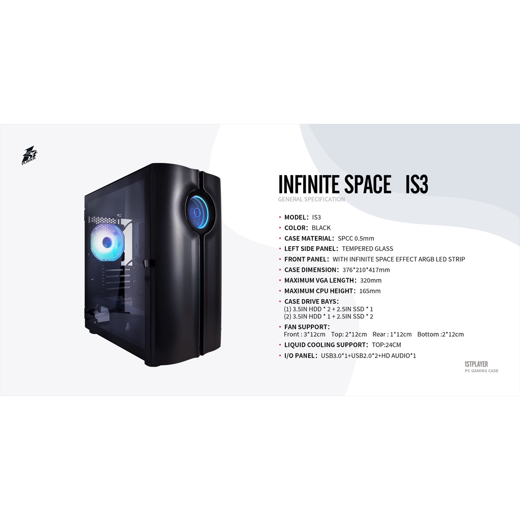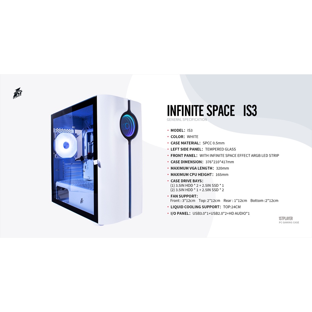 1ST PLAYER INFINITE SPACE IS3 M-ATX PC CASE - BLACK/WHITE/PINK