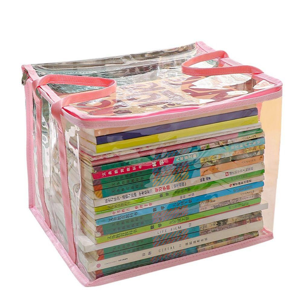 1SUNSHINE Comic Book Storage Bag, Zipper Handle Collapsible Pouch, Portable Transparent Dust Proof Stackable Collection Container Student