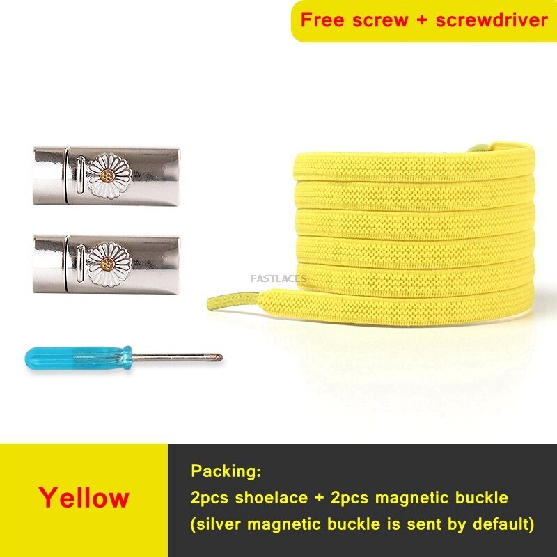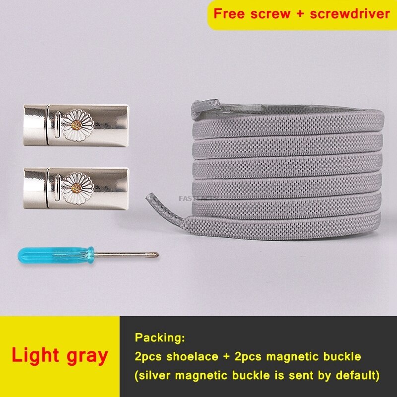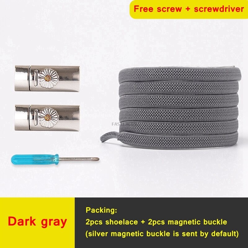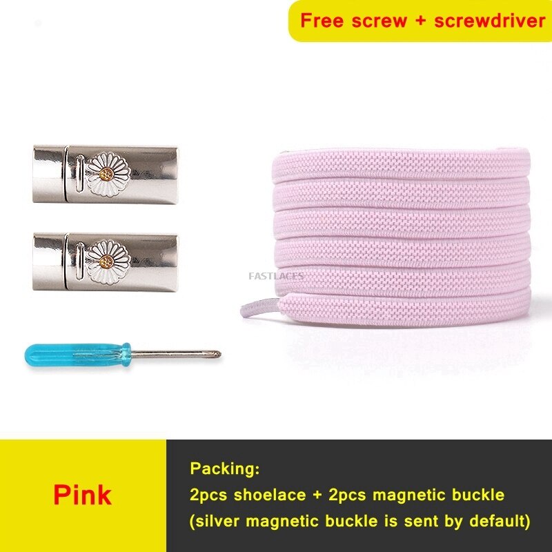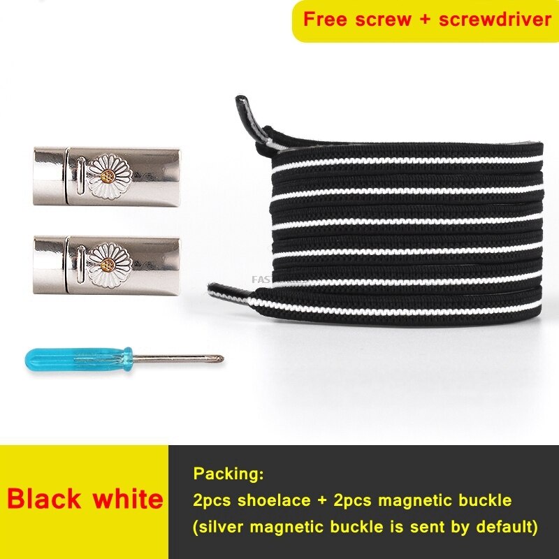 1Set Daisy Magnetic Lock Shoelaces Elastic Flat Shoelace Safety Quick Lock Black Shoe Lace Sneakers Unisex Kids ShoeLace Strings