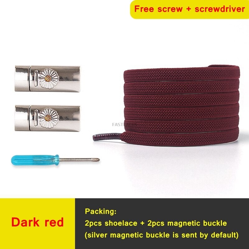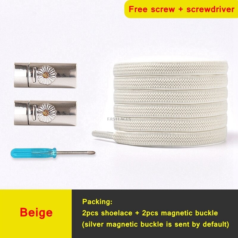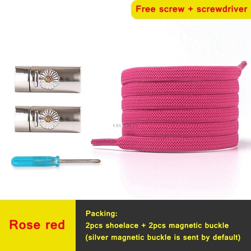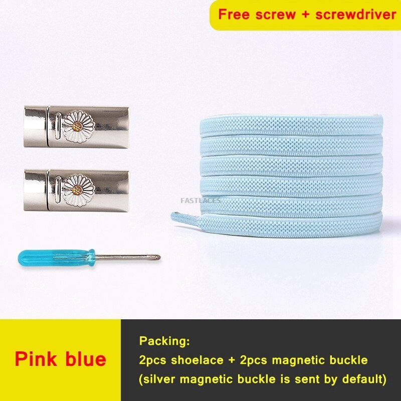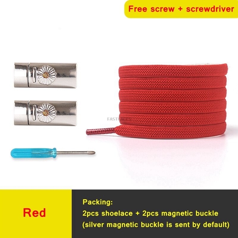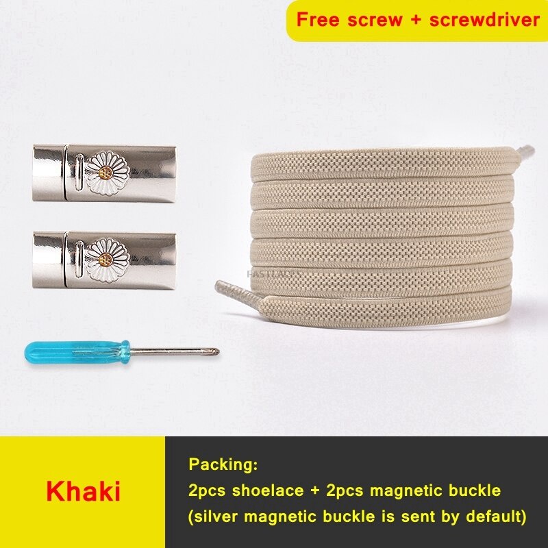 1Set Daisy Magnetic Lock Shoelaces Elastic Flat Shoelace Safety Quick Lock Black Shoe Lace Sneakers Unisex Kids ShoeLace Strings