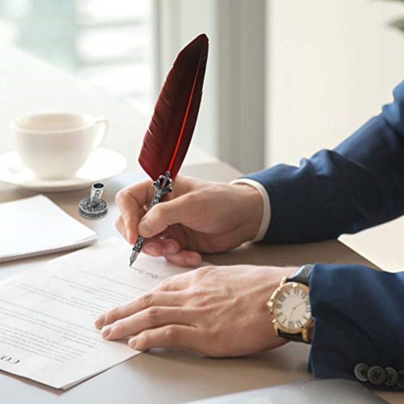 1Set Retro English Calligraphy Quill Dip Feather Pen With Ink And Wax Retro Feather Pen