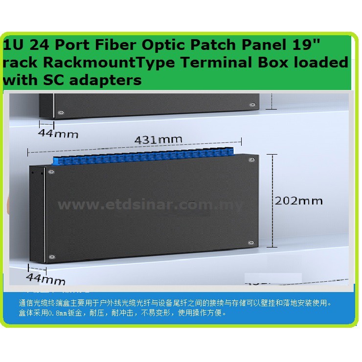 1U 24 Port ODF Fiber Optic Patch Panel SC adaptor