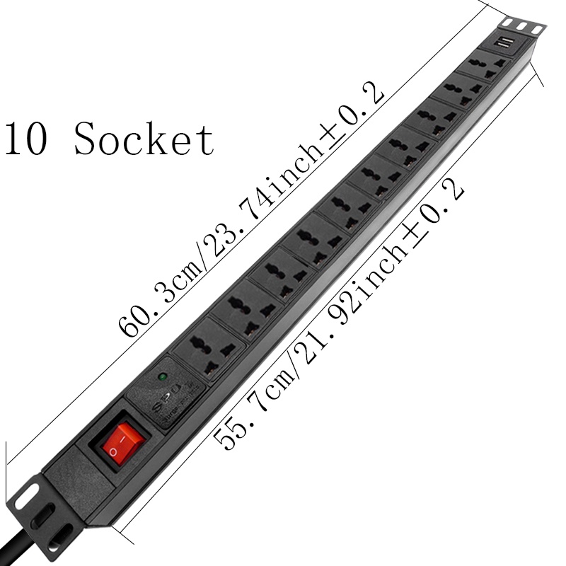 1U Power Distribution Unit (PDU) Power Board 3500W Surge Protection 2USB+2-12 Socket 2-meter Extension Cable UK Plug