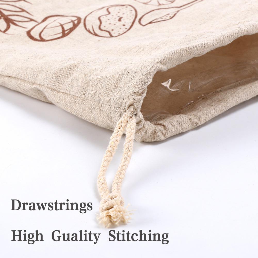1X Reusable Cotton Linen Bread Storage Bag Plastic Lined Bread Bags For Homemade Bread Keep Sourdough Bread Fresh XL 32 X 42 CM