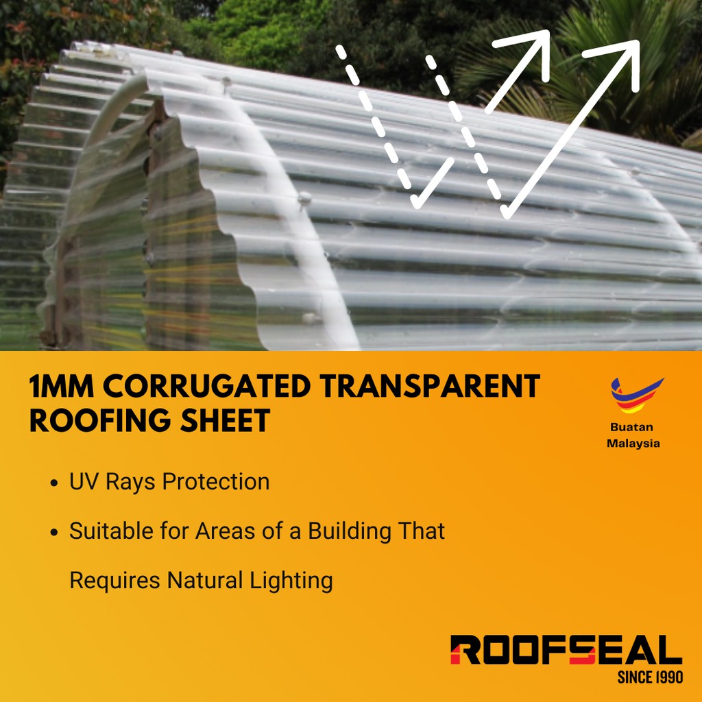 1mm Corrugated Transparent Roofing Sheet | Bumbung Atap Cerah Lutsinar | Roof Skylight | Corrugated Polycarbonate Roof