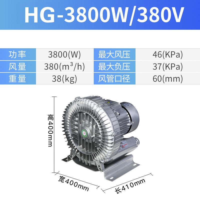 1pc 3800W-380V High-Pressure Vortex Fan High-Power Vortex-Type Air Pump Fish Pond Aeration Blower Aerator