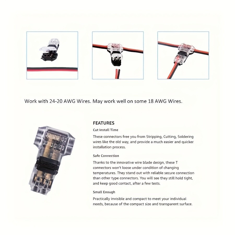 1pc/5Pcs T2 Type Interlocking Solder-Free Stripping-Free Connecting Terminal LED Light Strip Quick Connector Wire In-Line Terminal Power Splitter