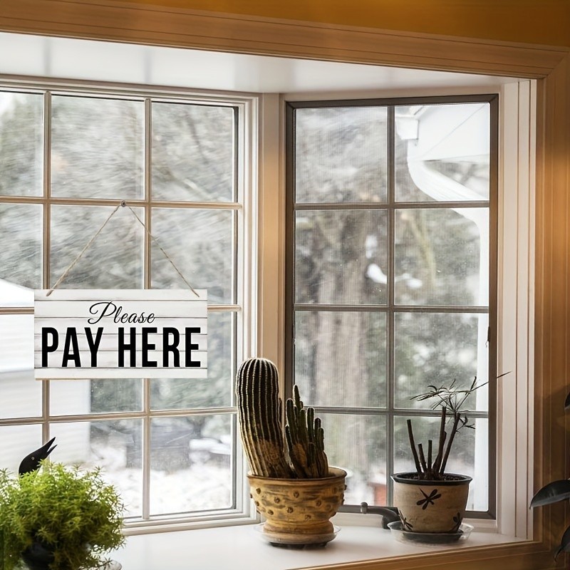 1pc Store Supermarket Shop Sign "Please Pay Here" Sign Wooden Wall Decoration Door Panel Wall Sticker Payment Reminder List