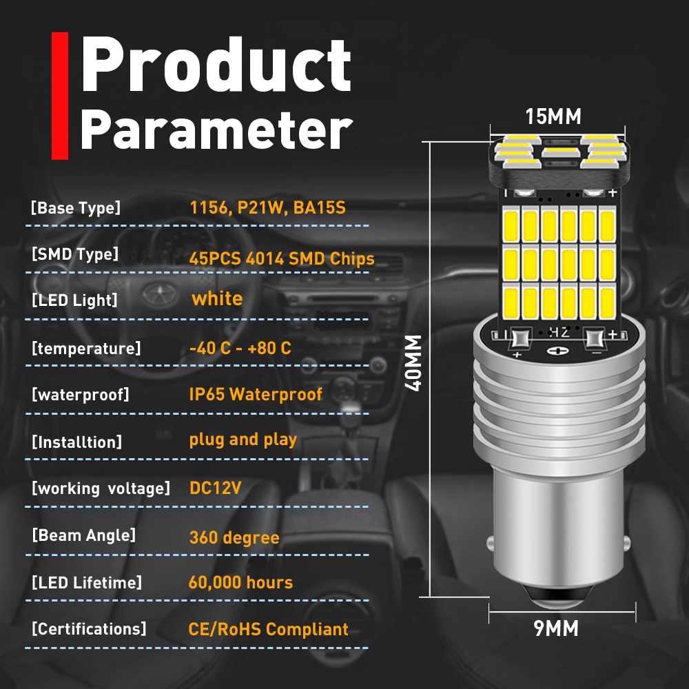 1pc T15 T20 Car LED Brake Light BA15S Bau15s 1156 BAY15D 1157 Turn Signal Light CANBUS PY21W W16W P21W 45SMD Auto Tail Bulb