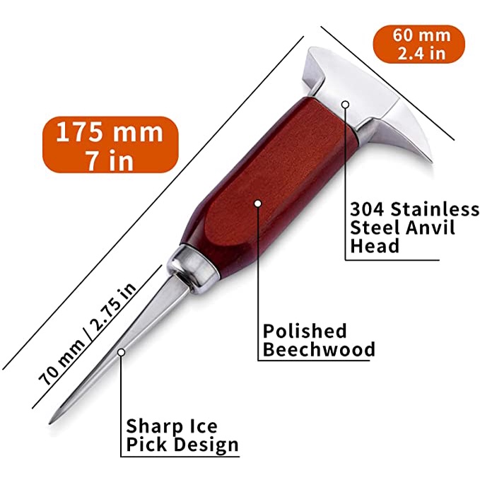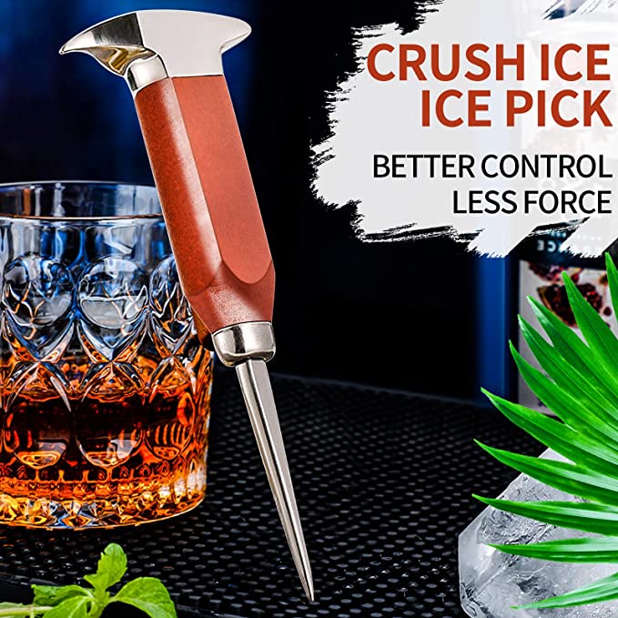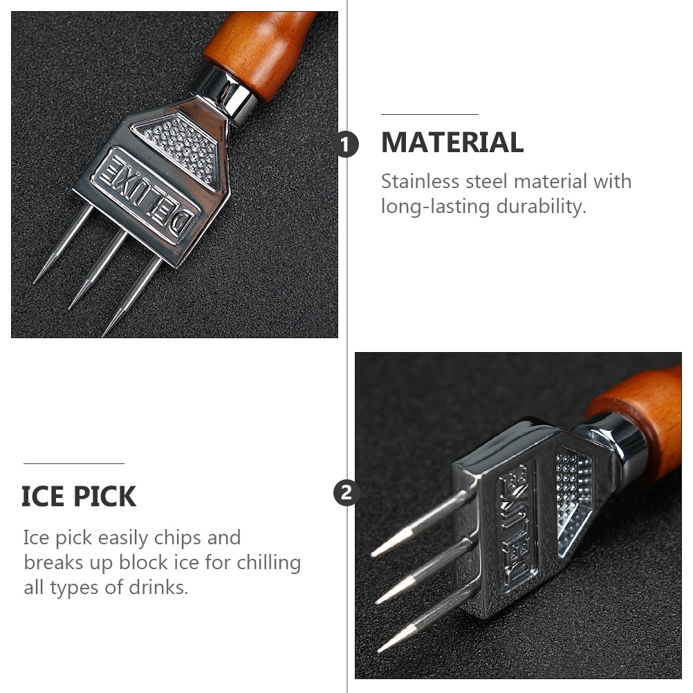 1pc Trident Ice Picks Ice Chisel Hammer Stainless Steel Ice Crusher with Wood Handle, Japanese Style Ice Chipper Ideal for Bars and Home
