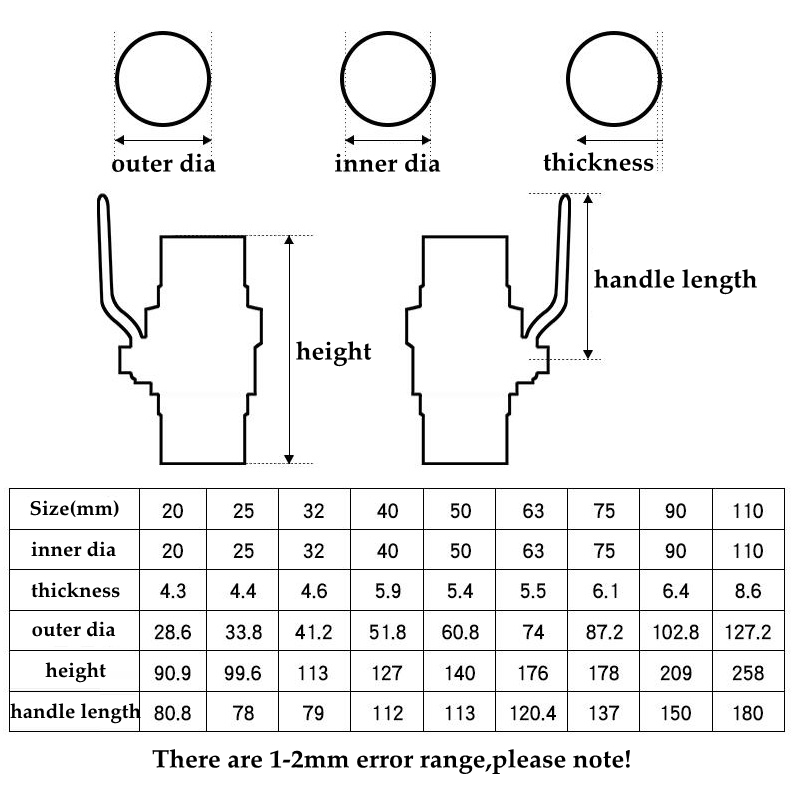 1pc UPVC Ball Valve Inner Diameter 20-63mm Steel Shank Valve High Quality PVC Fittings for Pipe Connection