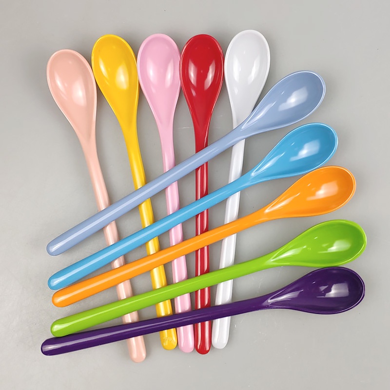 1pcs Candy Color Plastic Long Handle Dessert Dinner Soup Tea Spoon Tableware Flatware Stirring Coffee Milk Kitchen Scoops