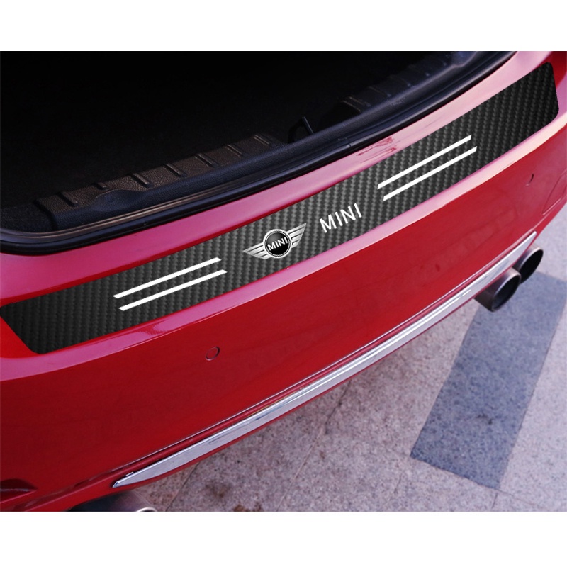 1pcs Car Trunk Protection Sticker Car Logo Carbon Fiber Rear Bumper Trim Protection Stickers for Mini Cooper One S JCW R55 R56 R60 F55 F56 Countryman Auto Decoration